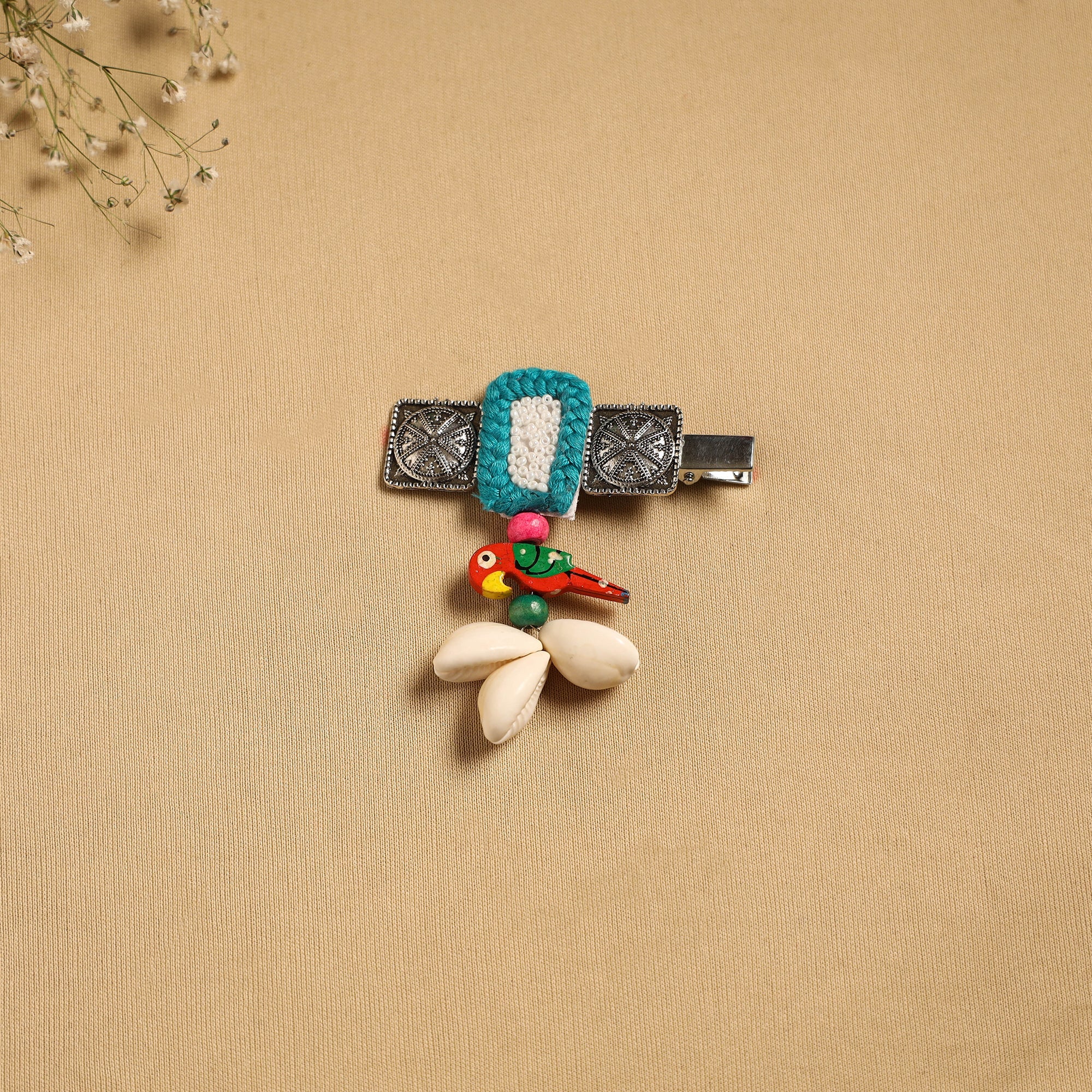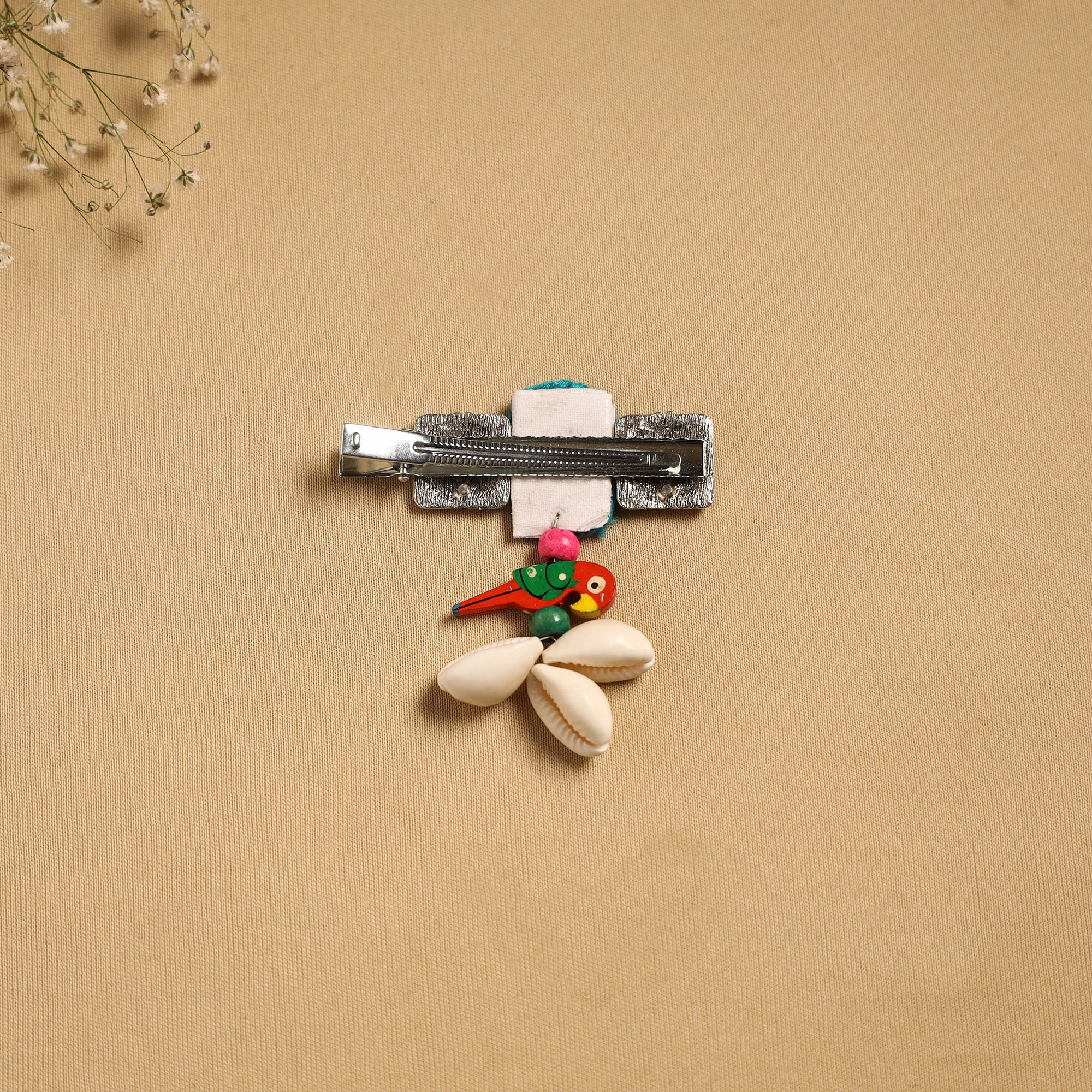 Handmade hair clip adds a graceful touch to your hairstyle. Features intricate artistic details that may include german silver, thread, shells bead work or other decorative elements, reflecting the unique creativity of the maker.