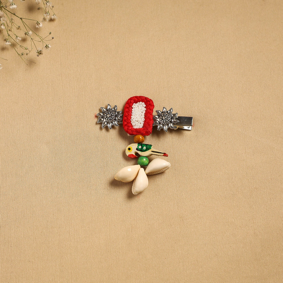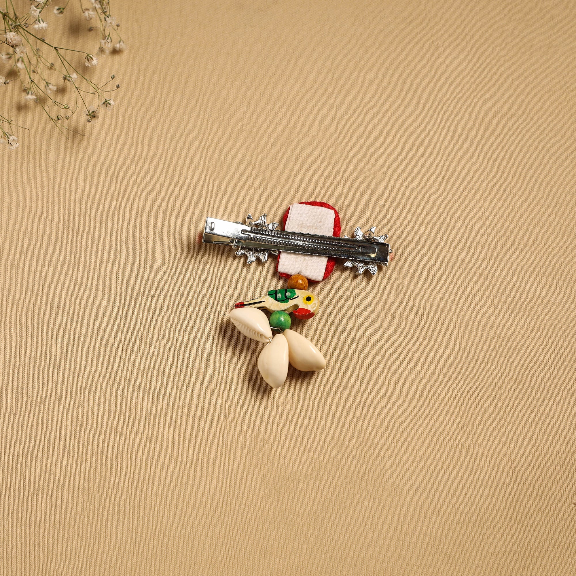 Handmade hair clip adds a graceful touch to your hairstyle. Features intricate artistic details that may include german silver, thread, shells bead work or other decorative elements, reflecting the unique creativity of the maker.