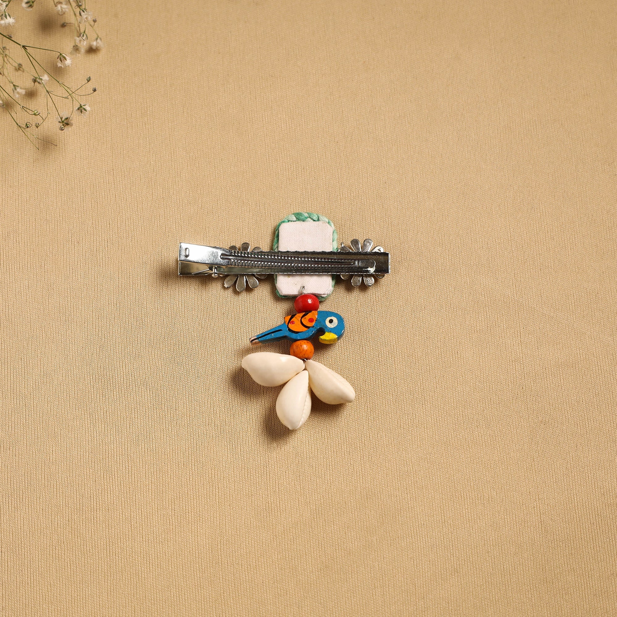 Handmade hair clip adds a graceful touch to your hairstyle. Features intricate artistic details that may include german silver, thread, shells bead work or other decorative elements, reflecting the unique creativity of the maker.