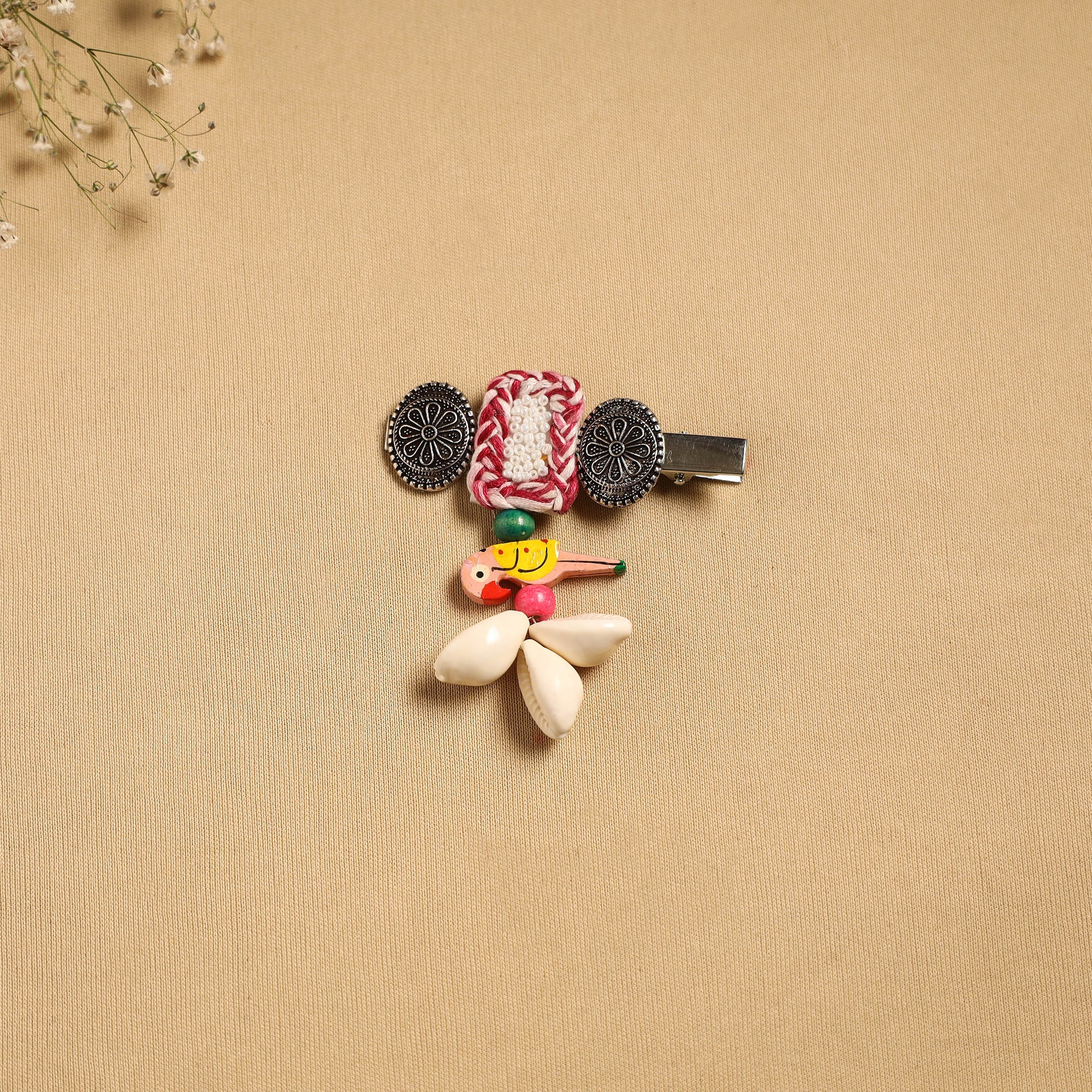 Handmade hair clip adds a graceful touch to your hairstyle. Features intricate artistic details that may include german silver, thread, shells bead work or other decorative elements, reflecting the unique creativity of the maker.