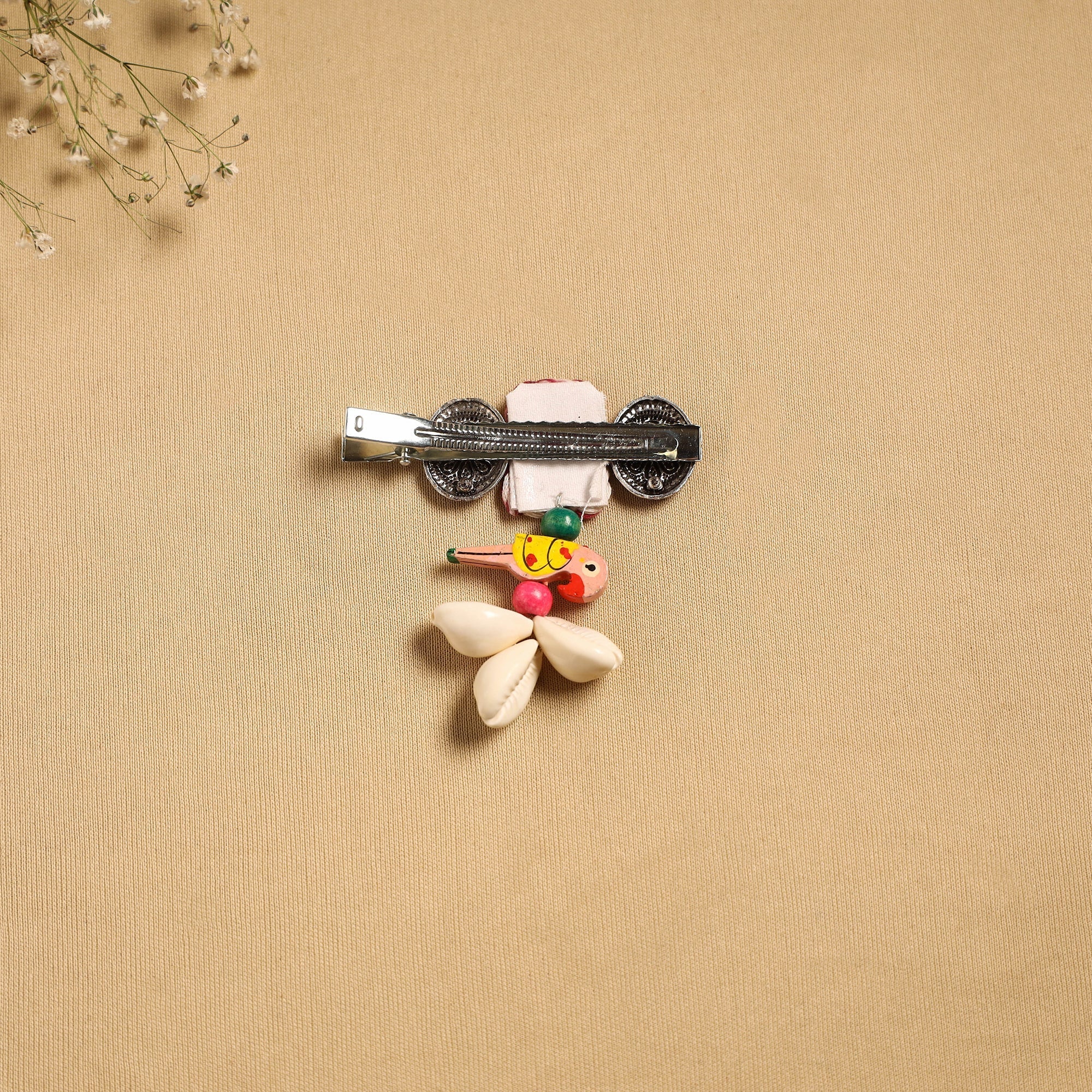 Pink handmade hair clip adds a graceful touch to your hairstyle. Features intricate artistic details that may include german silver, thread, shells bead work or other decorative elements, reflecting the unique creativity of the maker.