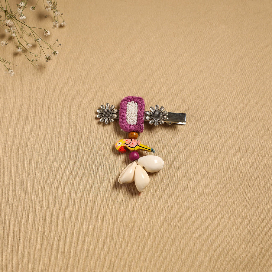Handmade hair clip adds a graceful touch to your hairstyle. Features intricate artistic details that may include german silver, thread, shells bead work or other decorative elements, reflecting the unique creativity of the maker.