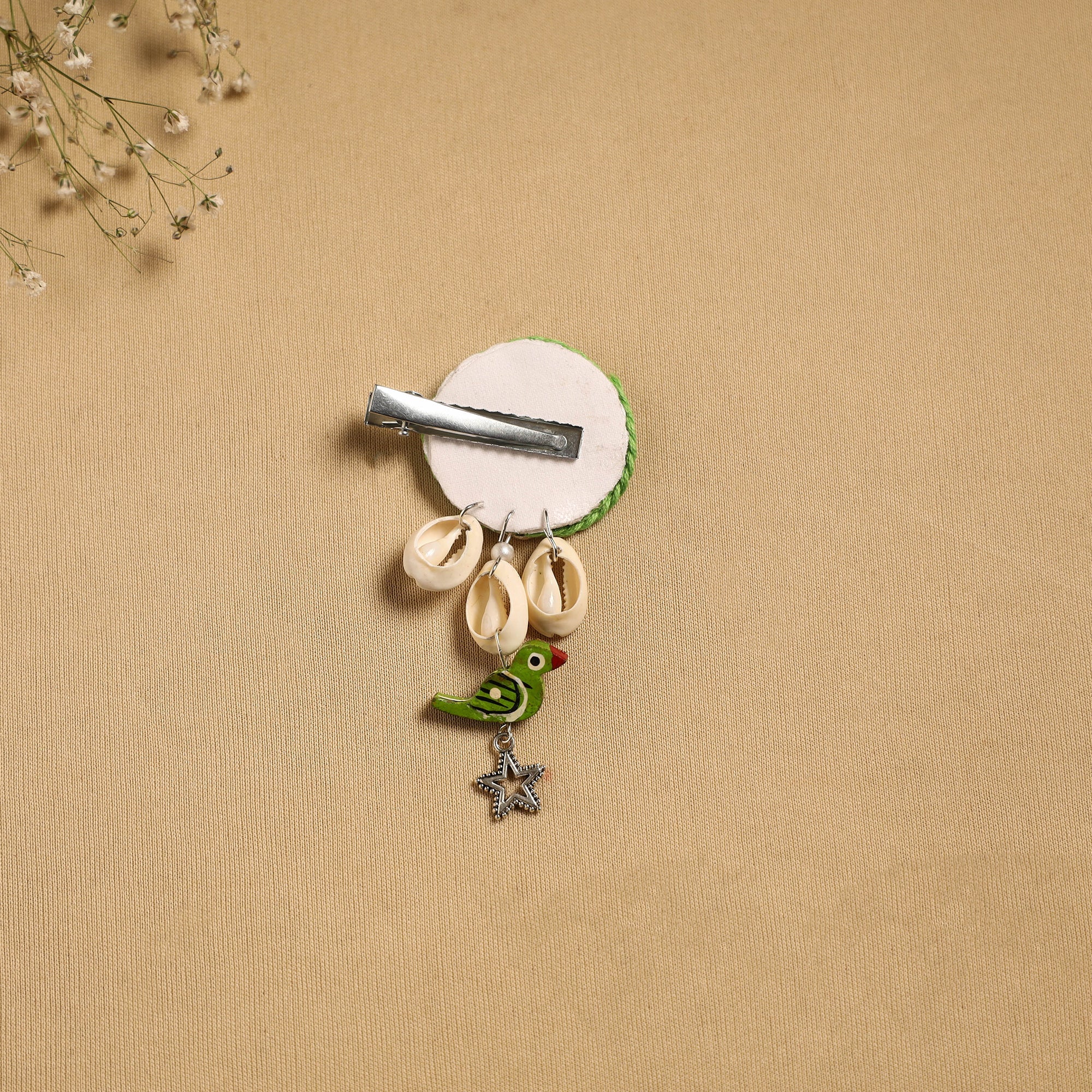 Handmade hair clip adds a graceful touch to your hairstyle. Features intricate artistic details that may include german silver, thread, shells bead work or other decorative elements, reflecting the unique creativity of the maker.