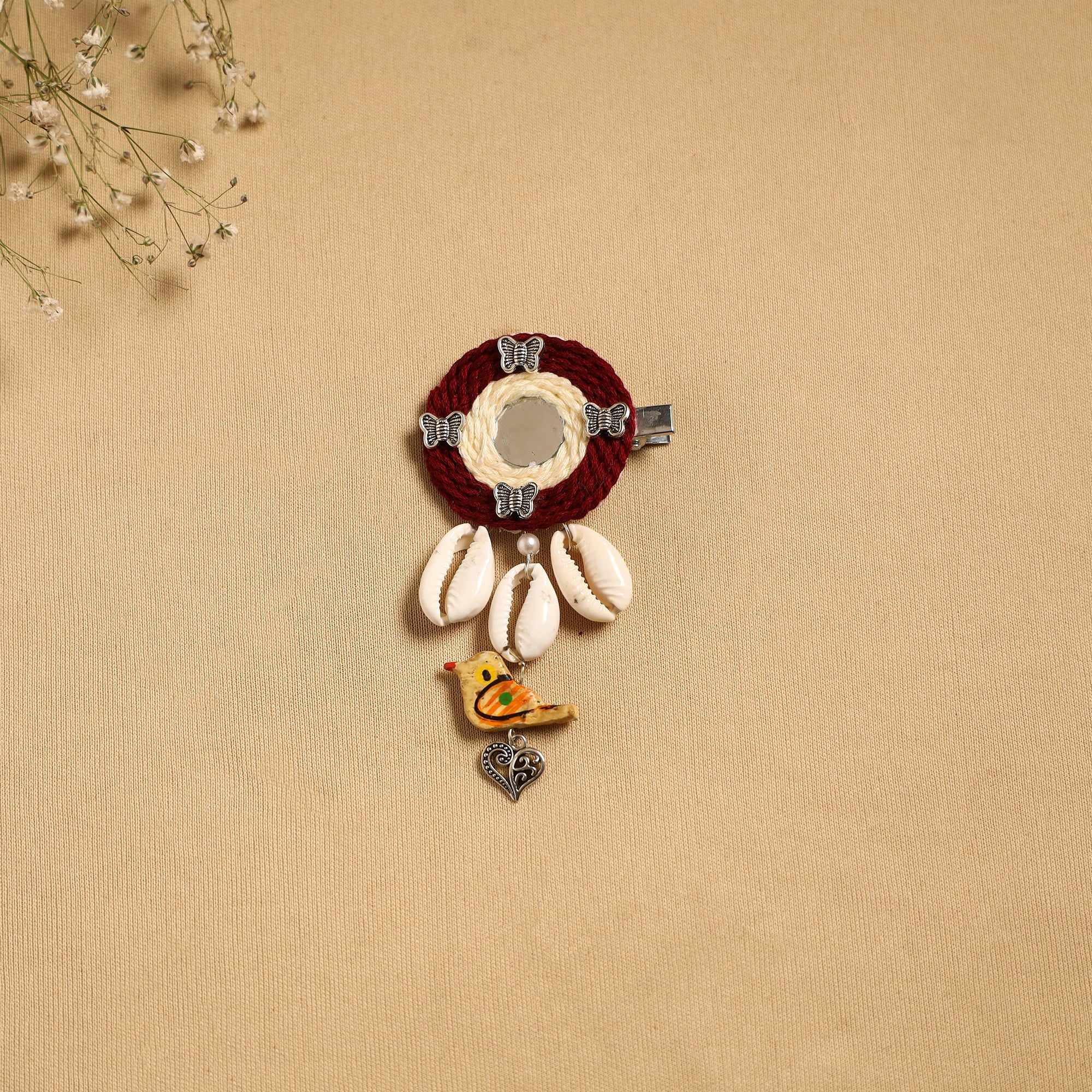 Handmade hair clip adds a graceful touch to your hairstyle. Features intricate artistic details that may include german silver, thread, shells bead work or other decorative elements, reflecting the unique creativity of the maker.