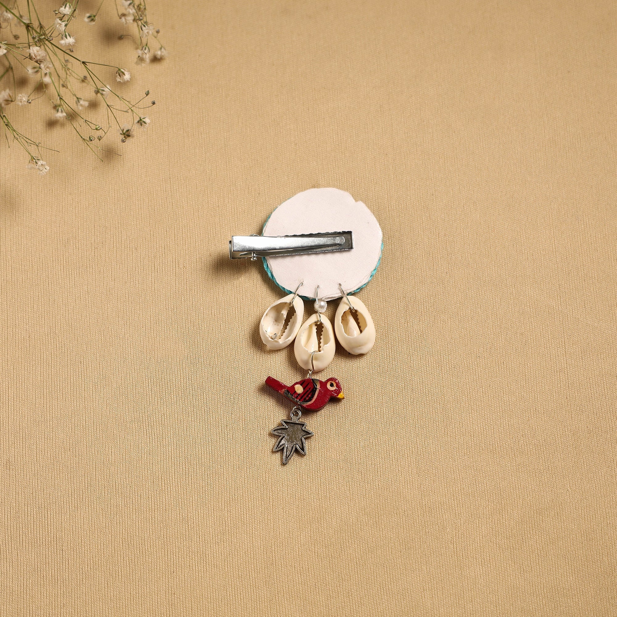 Blue handmade hair clip adds a graceful touch to your hairstyle. Features intricate artistic details that may include german silver, thread, shells bead work or other decorative elements, reflecting the unique creativity of the maker.