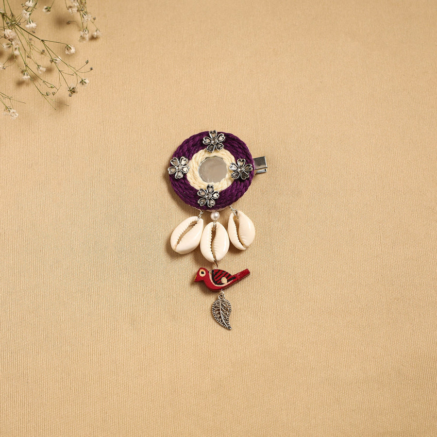 Handmade hair clip adds a graceful touch to your hairstyle. Features intricate artistic details that may include german silver, thread, shells bead work or other decorative elements, reflecting the unique creativity of the maker.