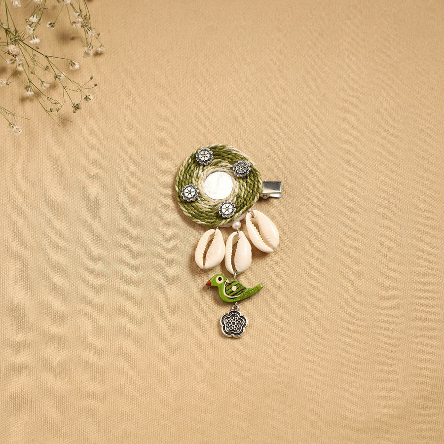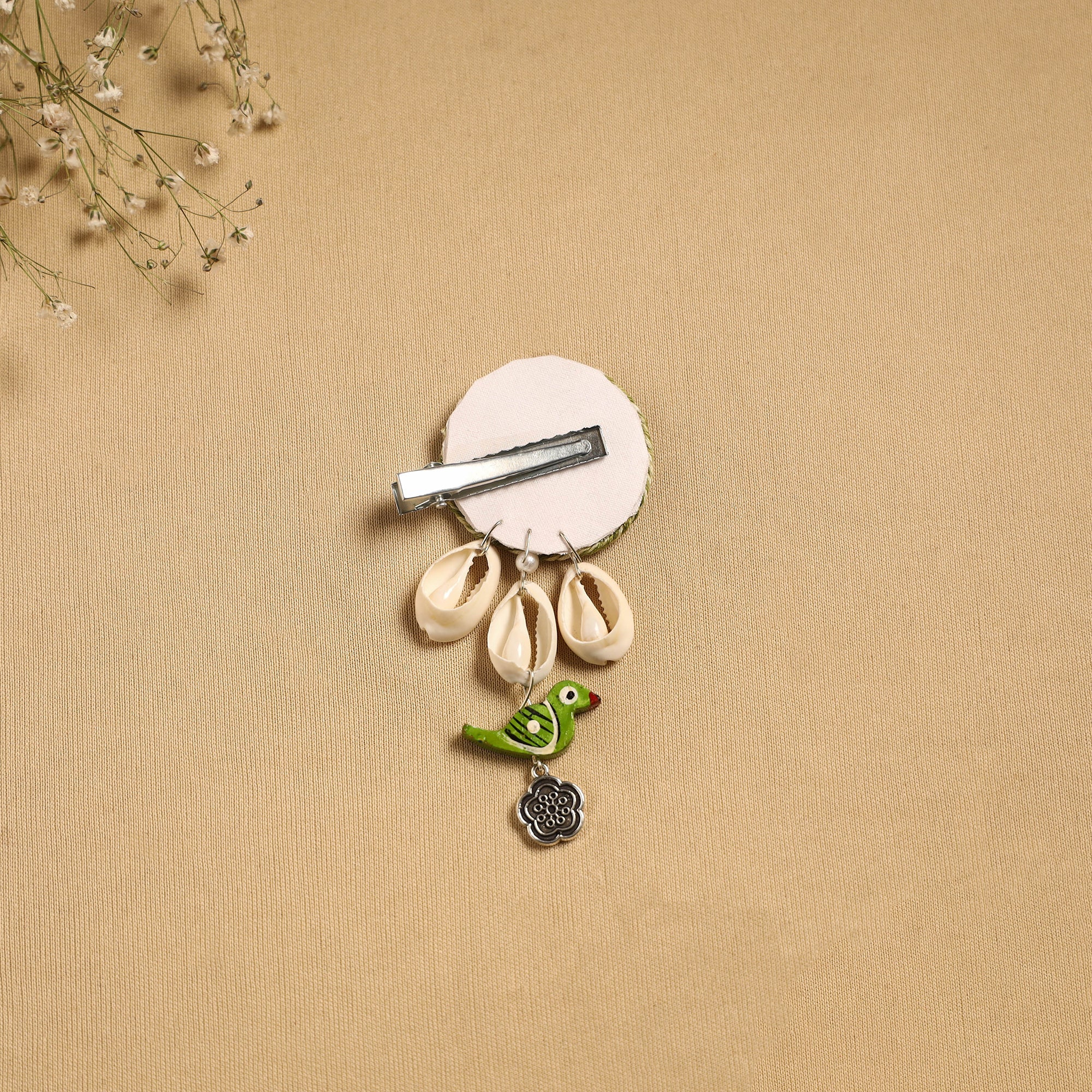 Handmade hair clip adds a graceful touch to your hairstyle. Features intricate artistic details that may include german silver, thread, shells bead work or other decorative elements, reflecting the unique creativity of the maker.