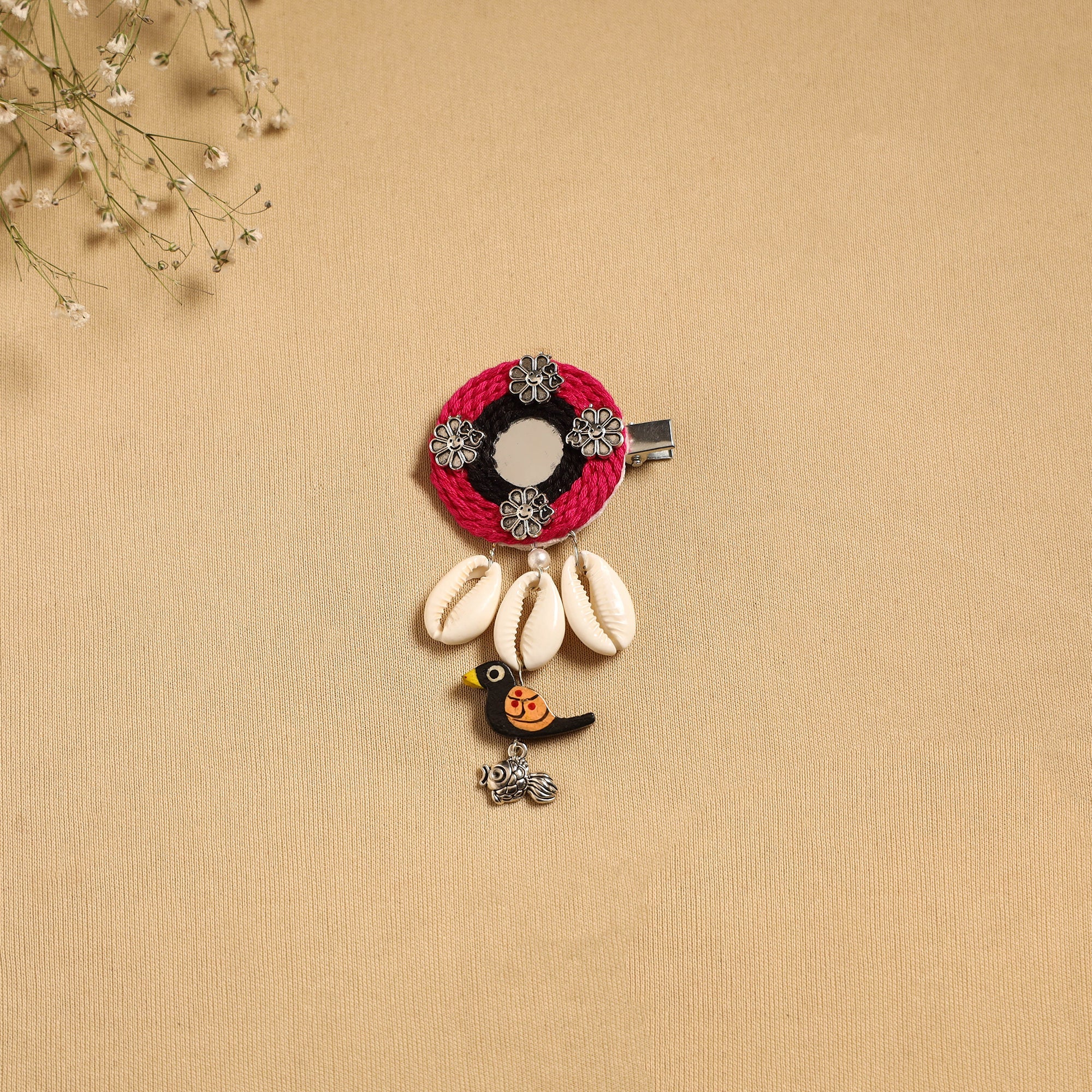 Handmade hair clip adds a graceful touch to your hairstyle. Features intricate artistic details that may include german silver, thread, shells bead work or other decorative elements, reflecting the unique creativity of the maker.