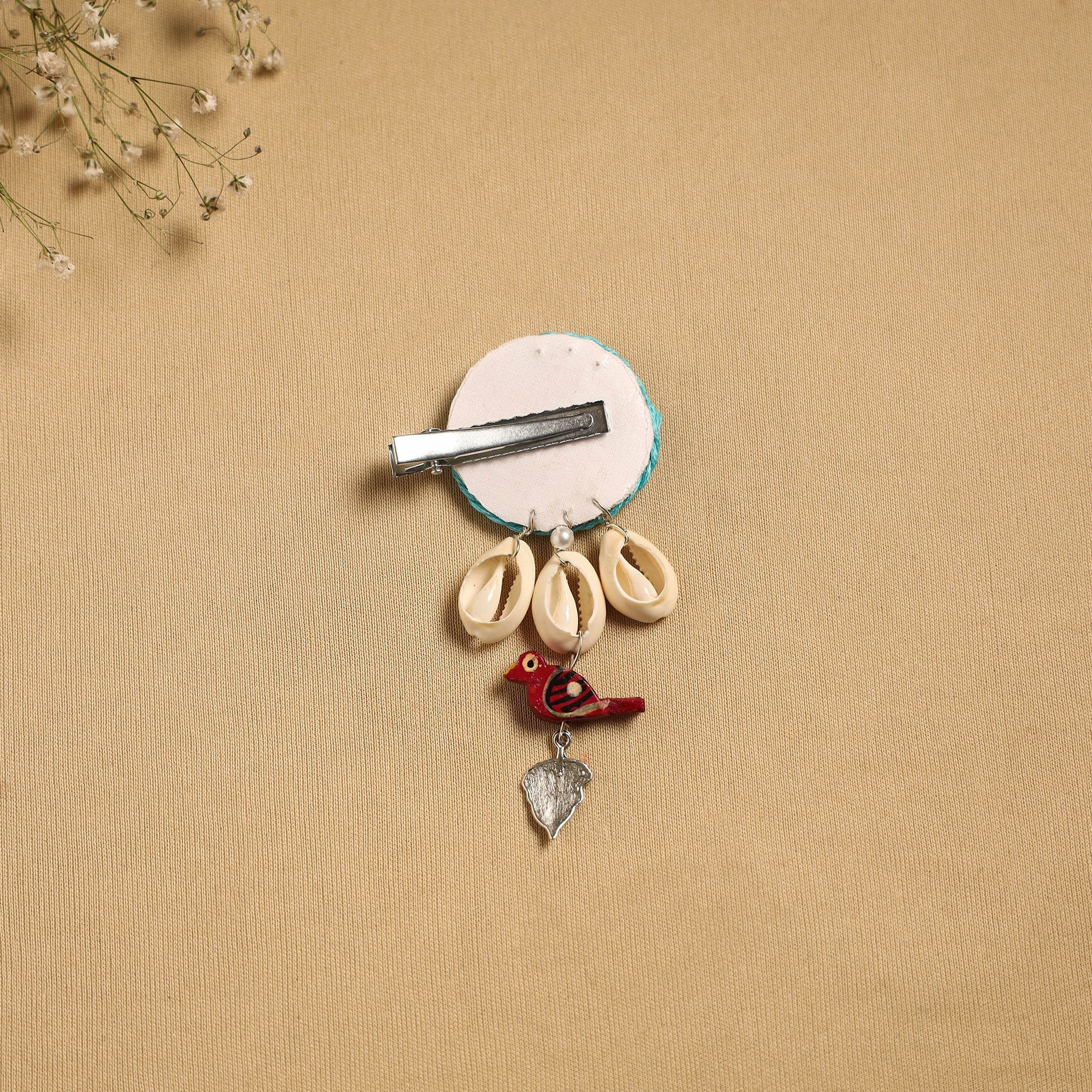 Handmade hair clip adds a graceful touch to your hairstyle. Features intricate artistic details that may include german silver, thread, shells bead work or other decorative elements, reflecting the unique creativity of the maker.
