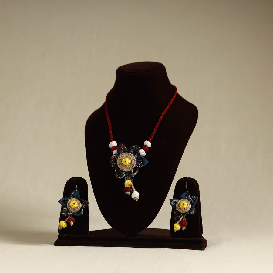 Elevate your jewelry collection with this artisan-crafted jute multicolor fabart necklace set. Featuring a thread necklace and coordinating earrings with a fabric pendant, it’s beautifully detailed with delicate jute work. Ideal for adding charm to your casual looks, festive attire, or handmade outfits.