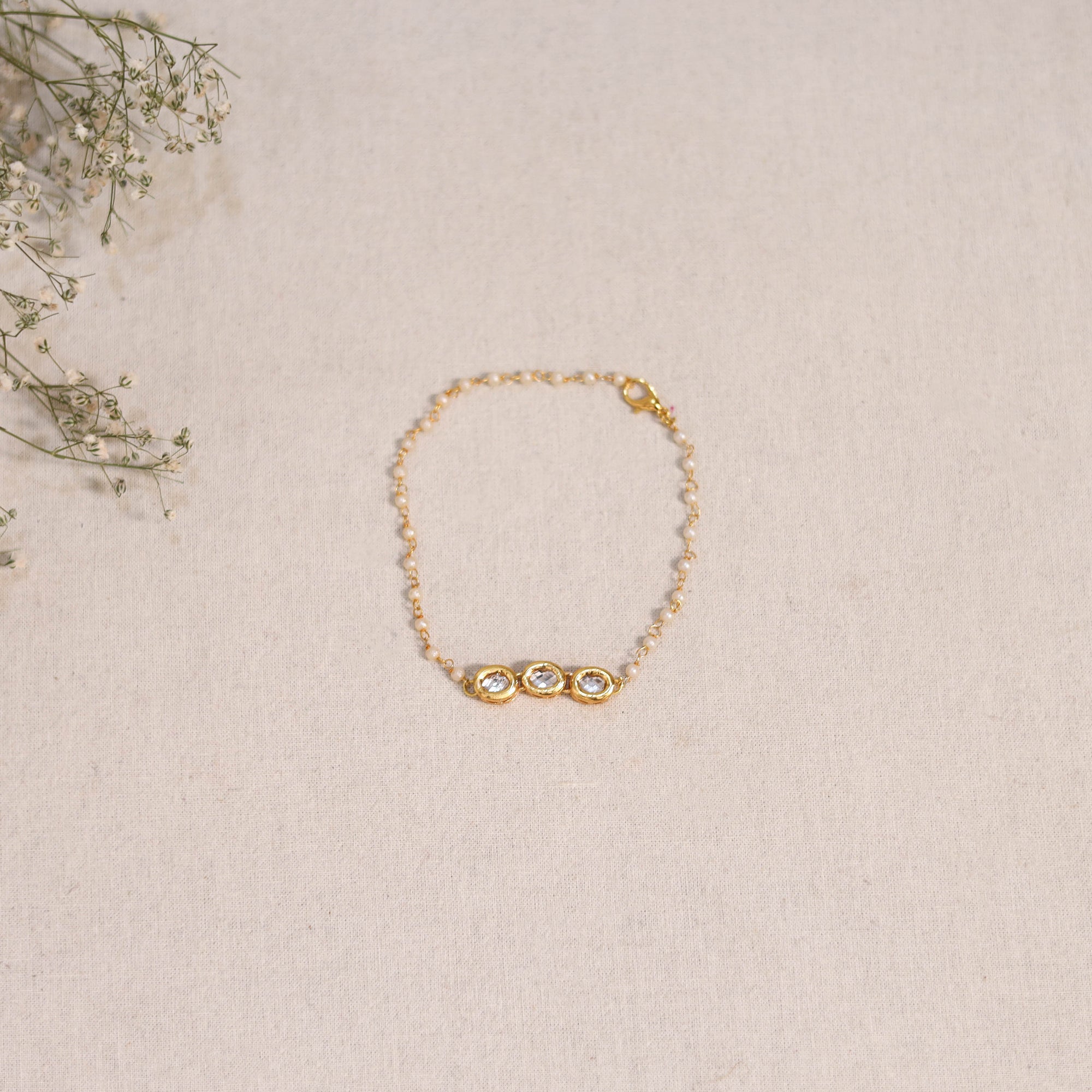 | Material | Add charm to your style with this handcrafted bracelet featuring intricate kundan & bead work. Crafted by skilled artisans using traditional techniques, this reversible piece offers two elegant looks in one. Whether you’re dressing up for a festive event or adding a touch of grace to your everyday outfit, this bracelet blends heritage design with contemporary appeal. |