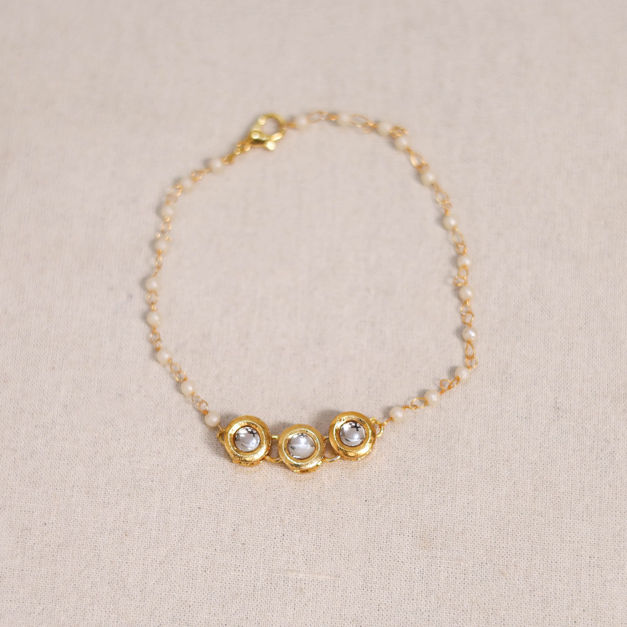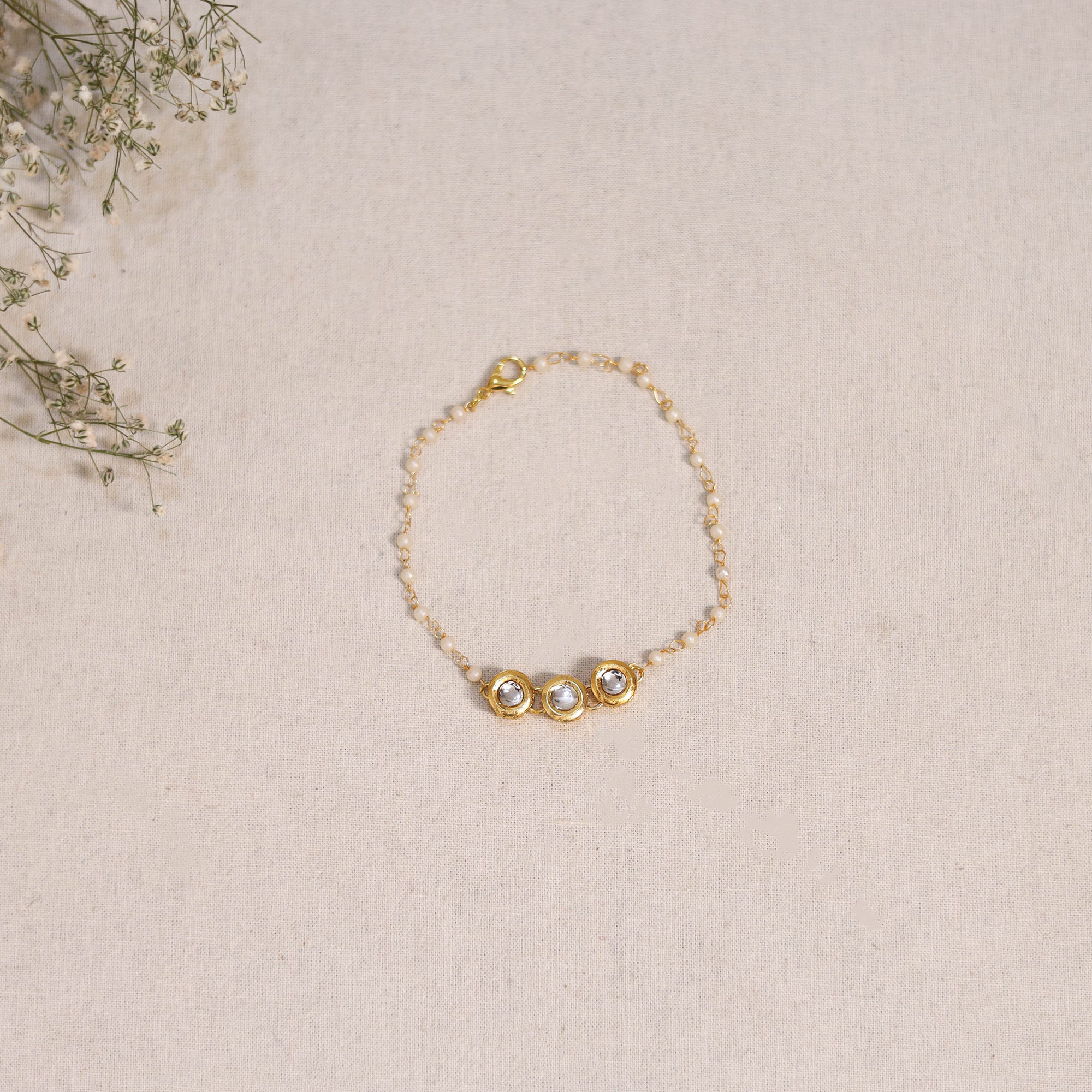 | Material | Add charm to your style with this handcrafted bracelet featuring intricate kundan & bead work. Crafted by skilled artisans using traditional techniques, this reversible piece offers two elegant looks in one. Whether you’re dressing up for a festive event or adding a touch of grace to your everyday outfit, this bracelet blends heritage design with contemporary appeal. |