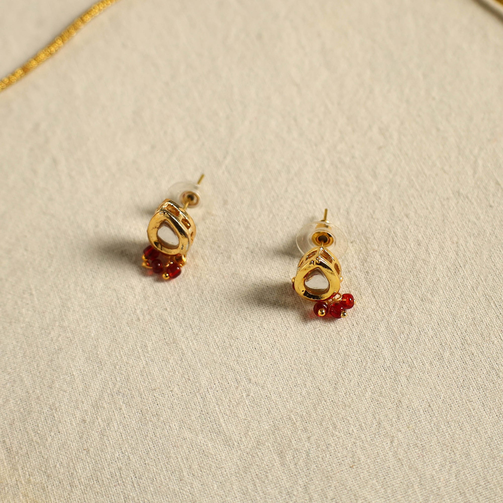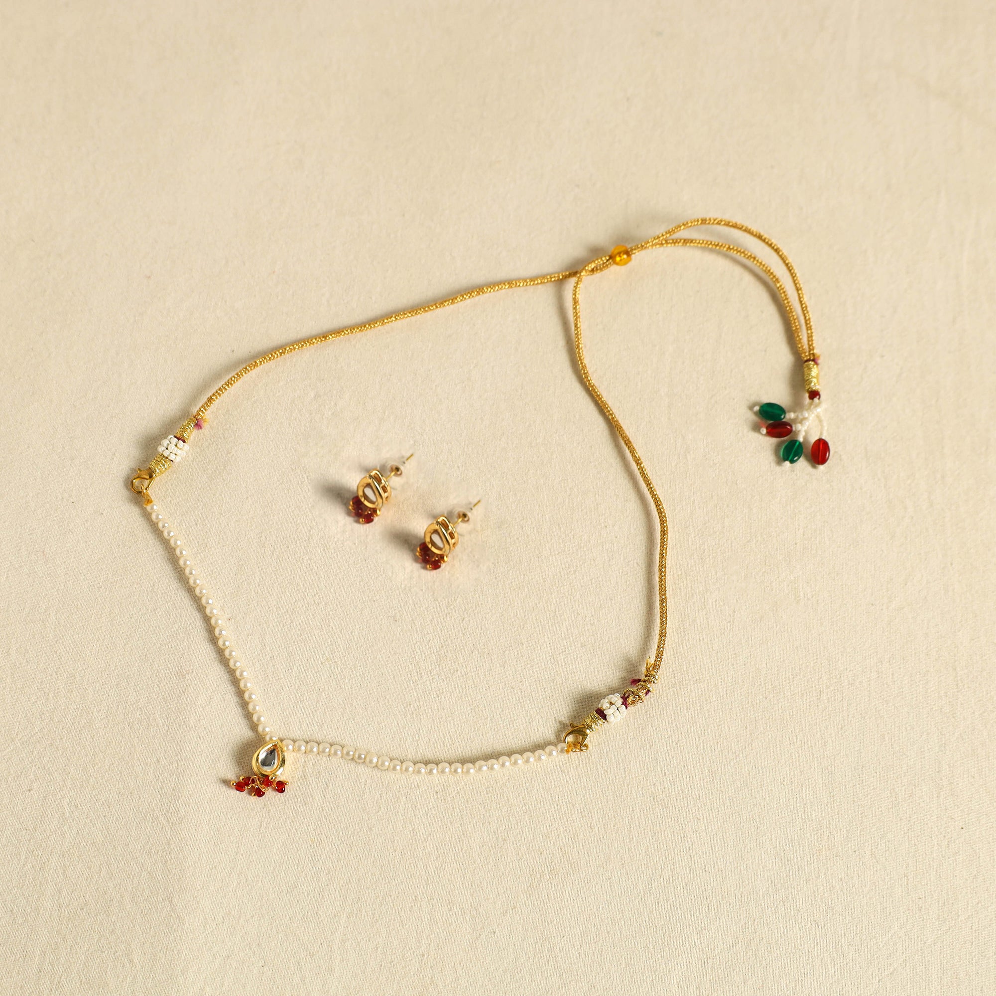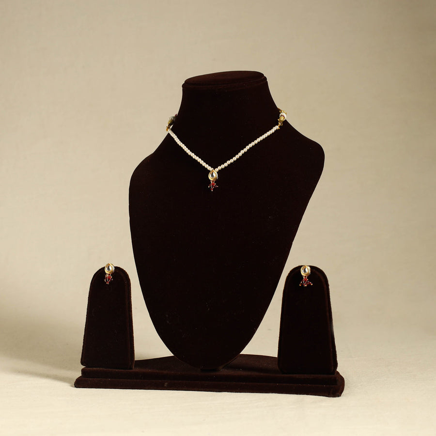 Add a unique charm to your look with this white handmade reversible choker necklace set, paired with matching earrings. Crafted by skilled artisans using traditional techniques, this set showcases intricate kundan detailing, making it a perfect choice to add elegance and style to any outfit.
