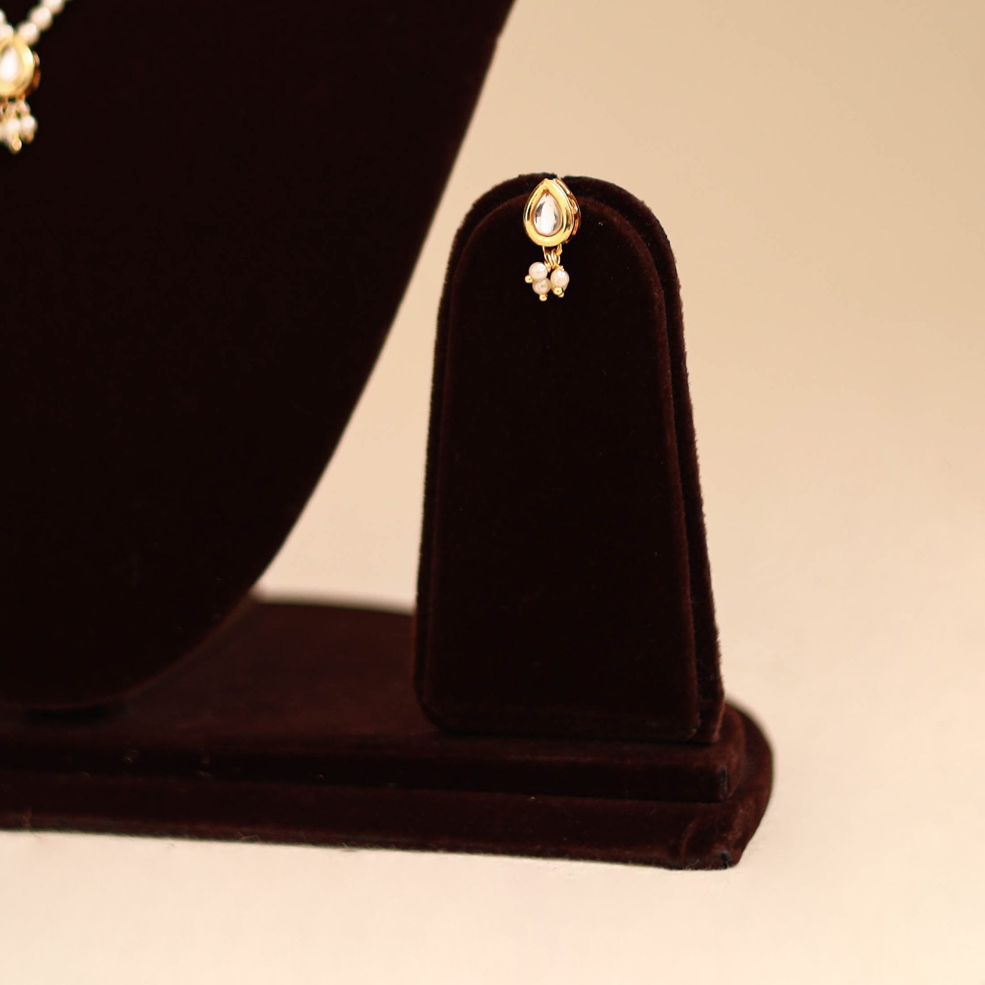 This white handmade kundan work choker necklace set comes with a beautifully designed necklace and matching earrings. The kundan & bead work adds a touch of elegance, making it perfect for weddings, parties, or festive occasions. Simple yet stylish, this set is easy to pair with traditional outfits and adds a graceful charm to your overall look.