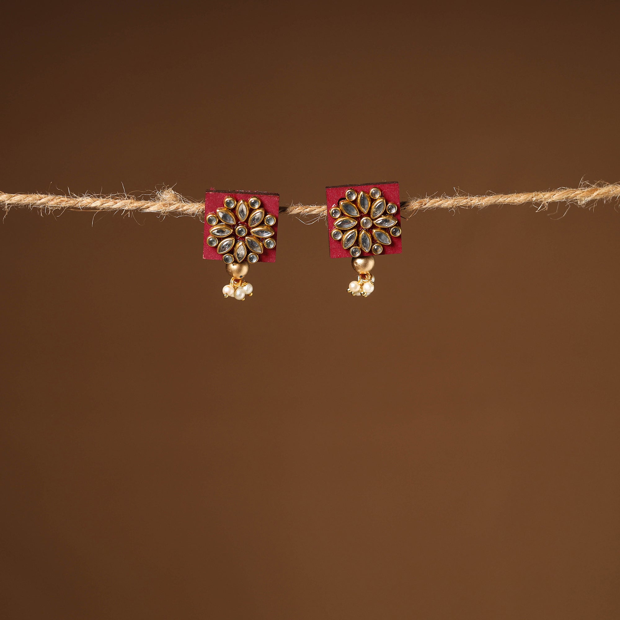 Add charm to your style with this red handcrafted kundan work earrings, crafted by skilled artisans using traditional techniques. This piece beautifully blends heritage jewellery design with a modern twist, making it perfect for festive occasions and everyday elegance.