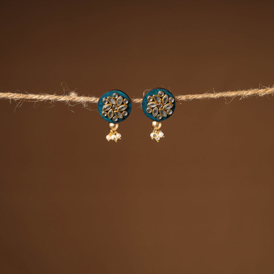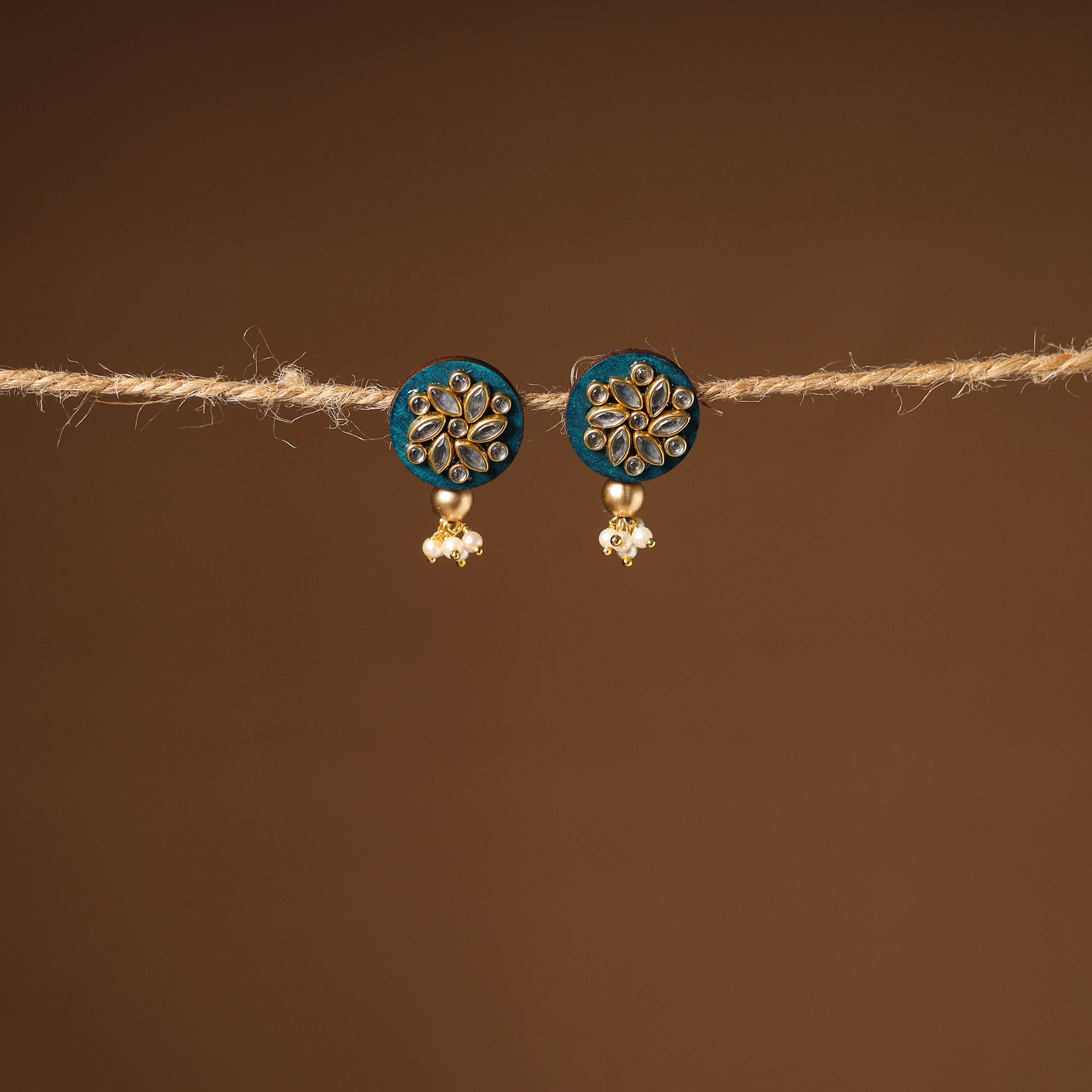 Add charm to your style with this green handcrafted kundan work earrings, crafted by skilled artisans using traditional techniques. This piece beautifully blends heritage jewellery design with a modern twist, making it perfect for festive occasions and everyday elegance.