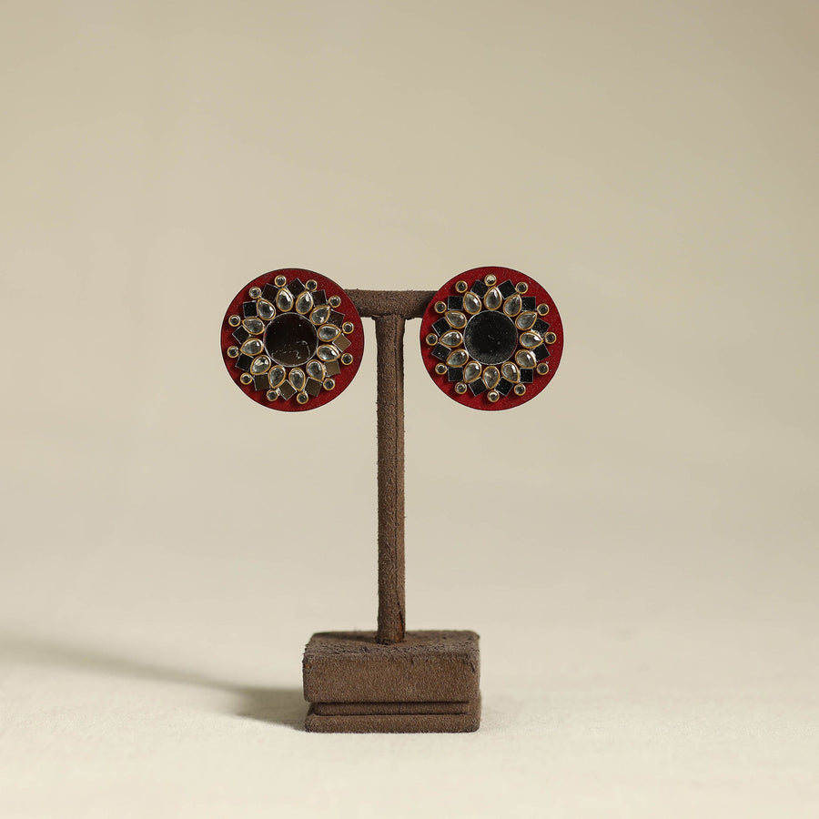 Add a unique charm to your look with these red handmade earrings. Crafted by skilled artisans using traditional techniques, these earrings showcase intricate kundan detailing, making them a perfect choice to add elegance and style to any outfit.
