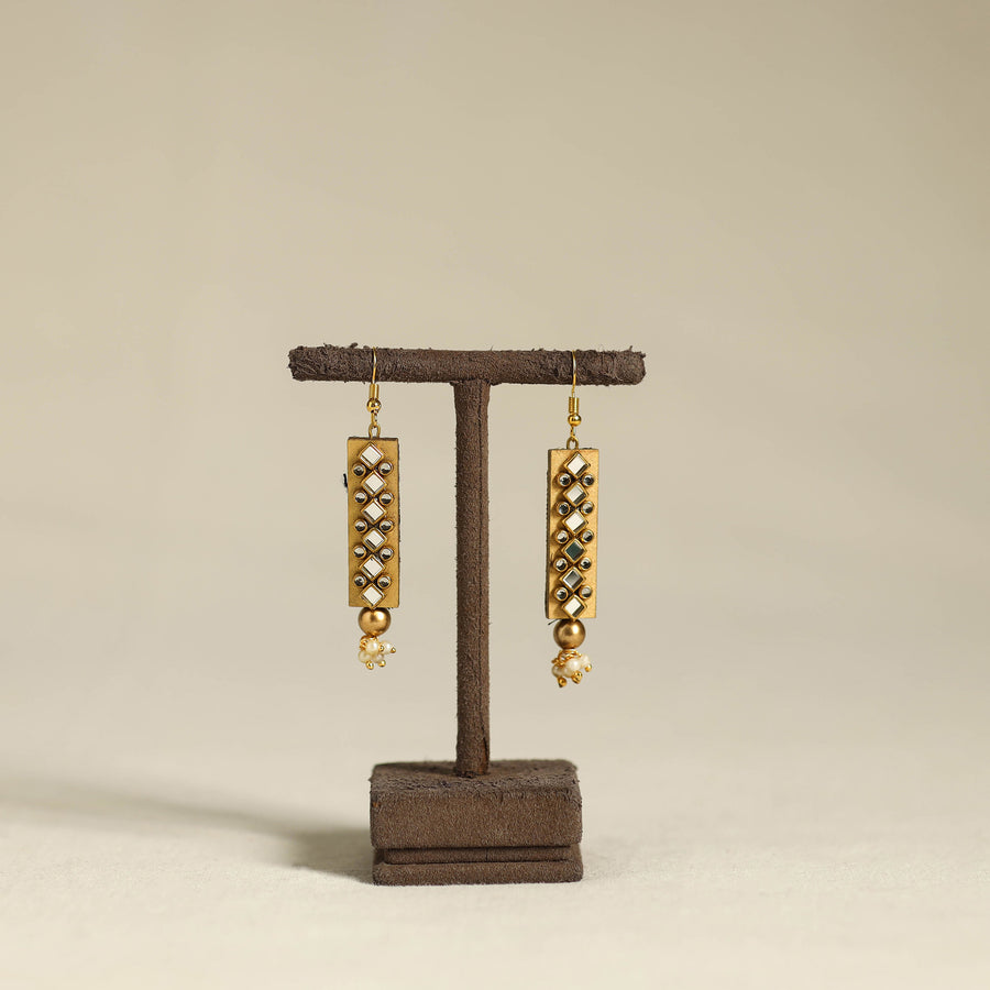 Add a unique charm to your look with these yellow handmade earrings. Crafted by skilled artisans using traditional techniques, these earrings showcase intricate kundan detailing, making them a perfect choice to add elegance and style to any outfit.