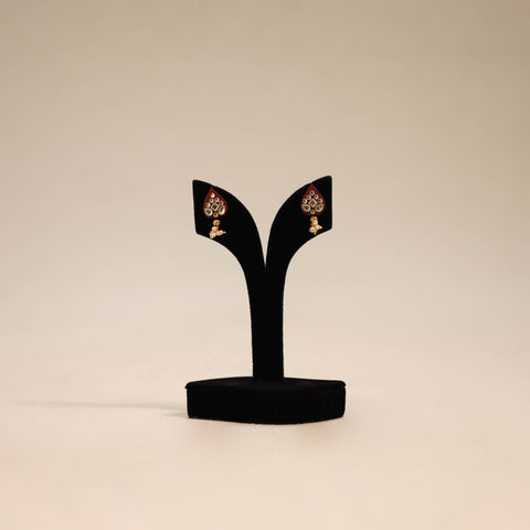 These red handmade kundan work earrings are crafted on a sturdy wood base to add a stylish touch to your look. Designed with care, they feature a unique artistic appeal while staying lightweight and comfortable to wear. Perfect for casual outings, festive events, or gifting, these earrings beautifully blend creativity with elegance for any occasion.