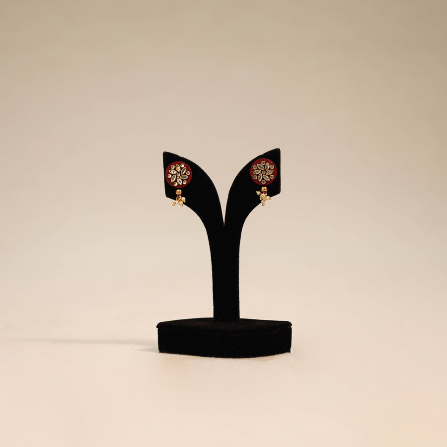 These red handmade kundan work earrings are crafted on a sturdy wood base to add a stylish touch to your look. Designed with care, they feature a unique artistic appeal while staying lightweight and comfortable to wear. Perfect for casual outings, festive events, or gifting, these earrings beautifully blend creativity with elegance for any occasion.
