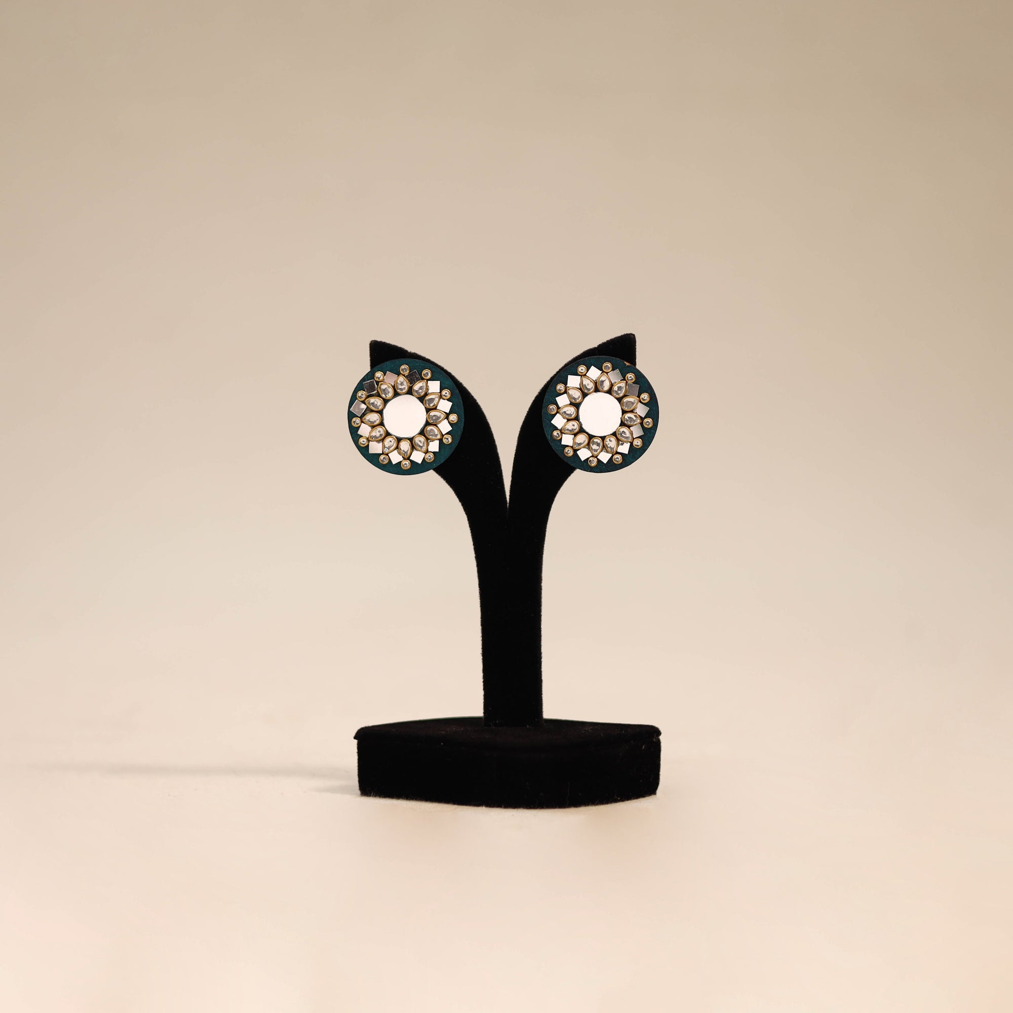 These green handmade kundan work earrings are crafted on a sturdy wood base to add a stylish touch to your look. Designed with care, they feature a unique artistic appeal while staying lightweight and comfortable to wear. Perfect for casual outings, festive events, or gifting, these earrings beautifully blend creativity with elegance for any occasion.
