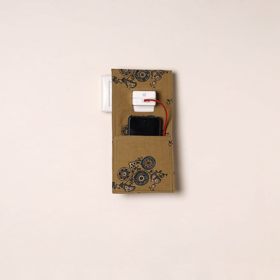 Handmade mobile charging holder is crafted from durable cotton fabric and features a convenient cut-out to hang directly on the plug. Designed with a deep front pocket, it securely holds your phone while charging. Created by artisans, it’s lightweight, foldable, fitting most phone sizes. A practical pick for home, office or travel use.