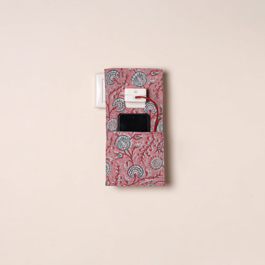 | Material | Pink handmade mobile charging holder is crafted from durable cotton fabric and features a convenient cut-out to hang directly on the plug. Designed with a deep front pocket, it securely holds your phone while charging. Created by artisans, it’s lightweight, foldable, fitting most phone sizes. A practical pick for home, office or travel use. |