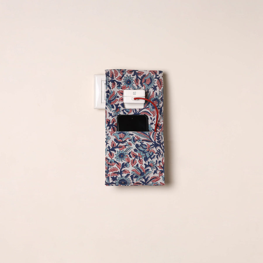Handmade mobile charging holder is crafted from durable cotton fabric and features a convenient cut-out to hang directly on the plug. Designed with a deep front pocket, it securely holds your phone while charging. Created by artisans, it’s lightweight, foldable, fitting most phone sizes. A practical pick for home, office or travel use.