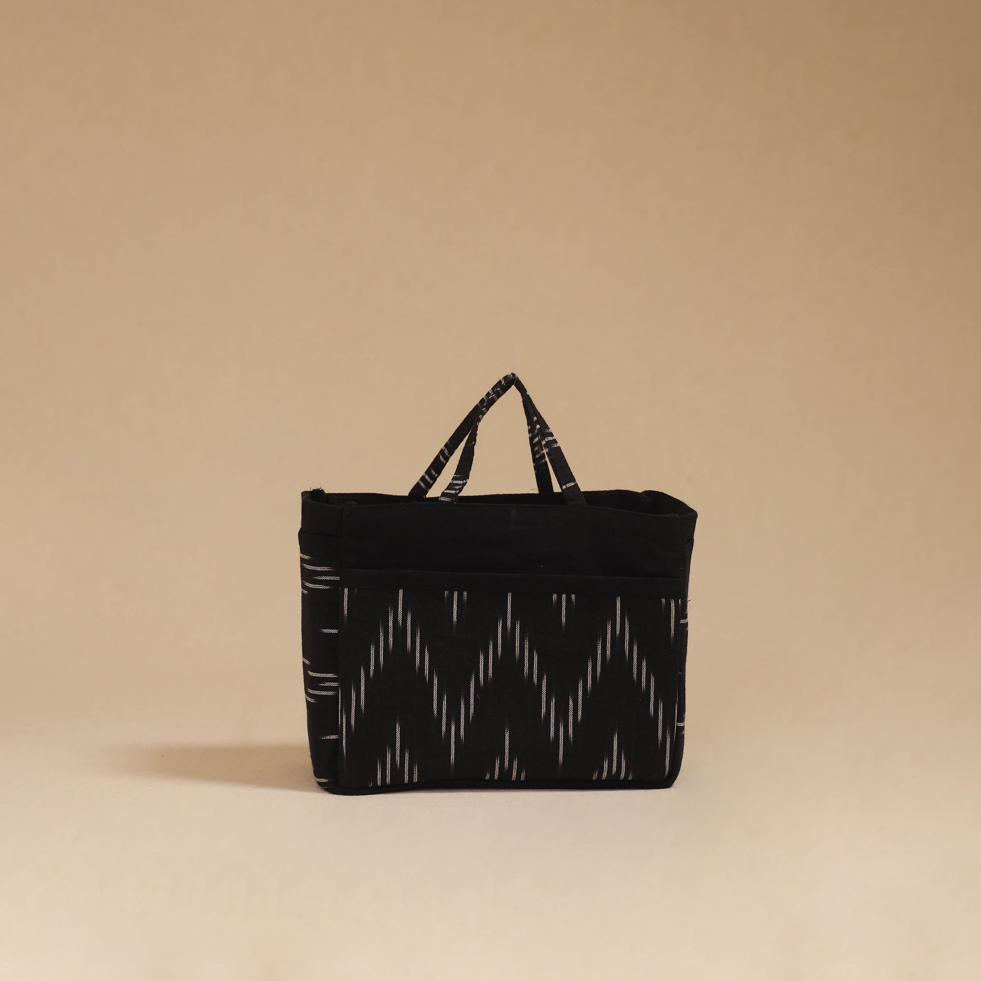 Handmade black multipurpose cosmetic/toiletry bag made from cotton. This bag features a spill-proof sheet layer inside, making it perfect for toiletries or cosmetics. With multiple pockets inside and out, you’ll have ample space for all your essentials.