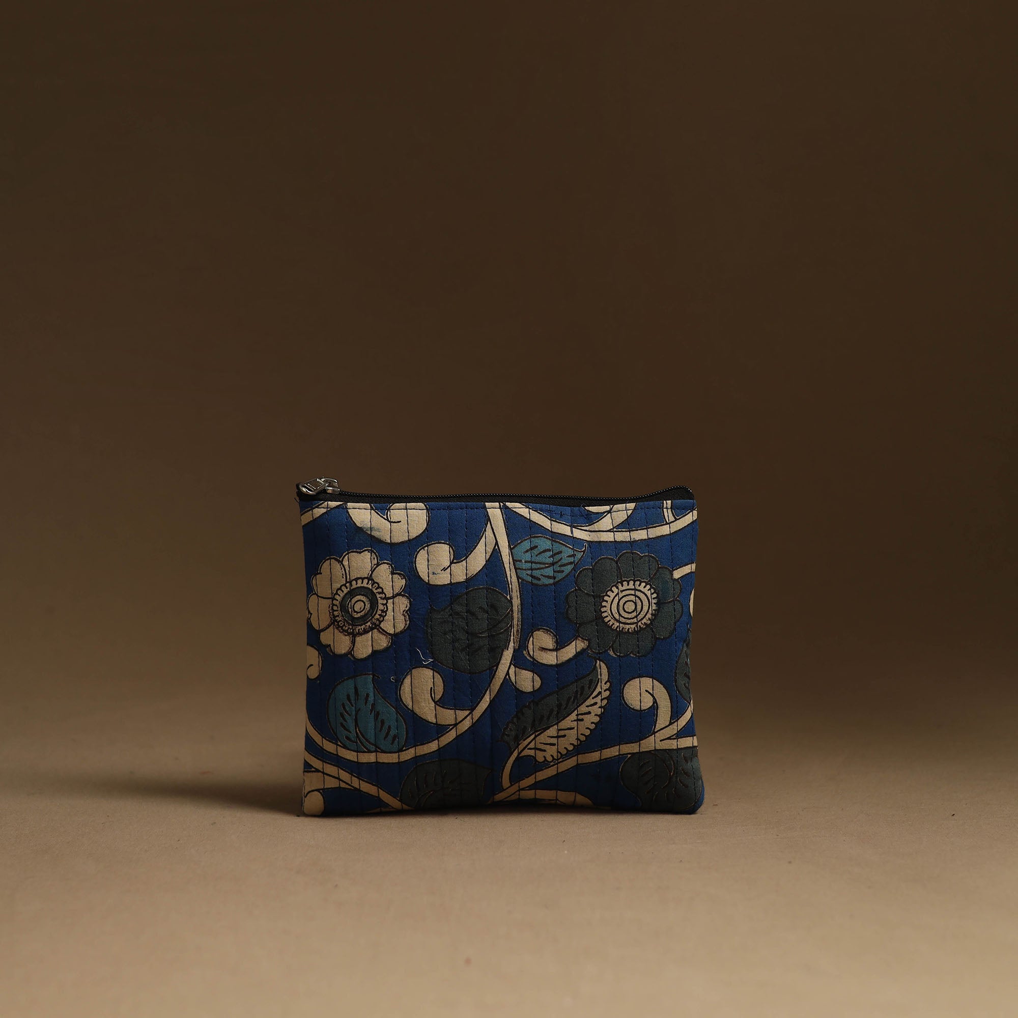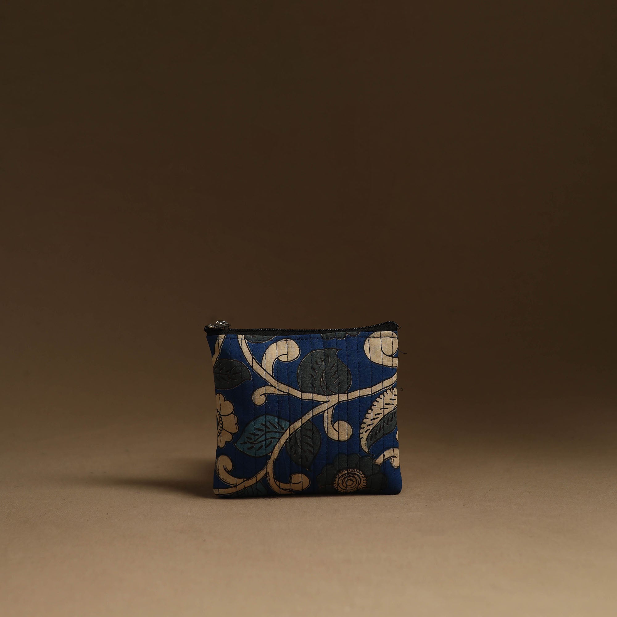 Organize your essentials with this blue handmade cotton multipurpose utility pouches (set of 3). Ideal for storing makeup, jewelry, medicines, or stationery, these pouches offer both functionality and style. Crafted with care by artisans, they feature a foam layer lining for added protection and a smooth zipper closure for easy access.