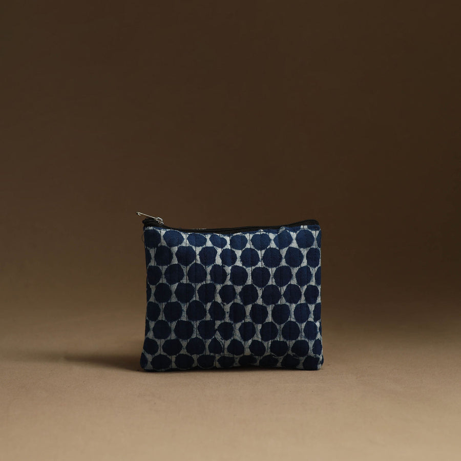Organize your essentials with this blue handmade cotton multipurpose utility pouches (set of 3). Ideal for storing makeup, jewelry, medicines, or stationery, these pouches offer both functionality and style. Crafted with care by artisans, they feature a foam layer lining for added protection and a smooth zipper closure for easy access.