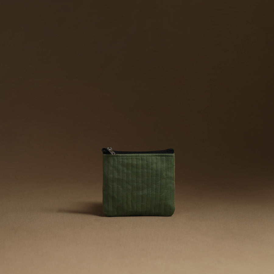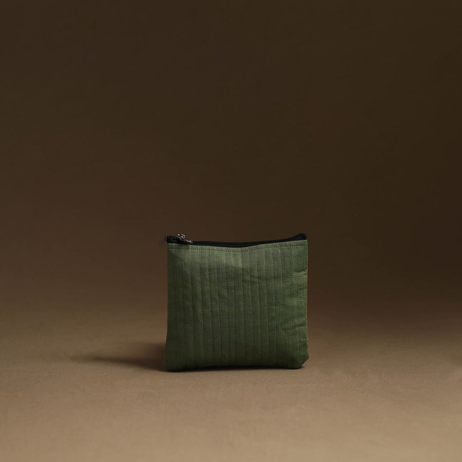 Organize your essentials with this green handmade cotton multipurpose utility pouches (set of 3). Ideal for storing makeup, jewelry, medicines, or stationery, these pouches offer both functionality and style. Crafted with care by artisans, they feature a foam layer lining for added protection and a smooth zipper closure for easy access.