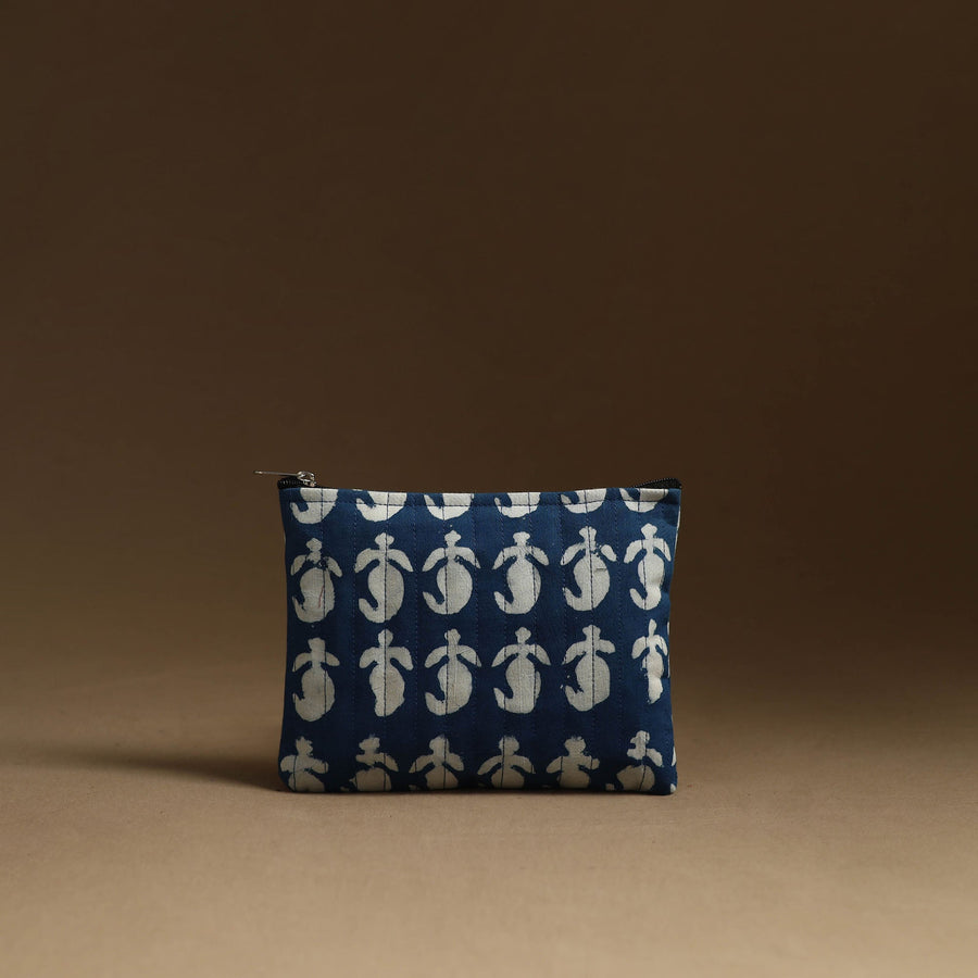 Organize your essentials with this blue handmade cotton multipurpose utility pouches (set of 3). Ideal for storing makeup, jewelry, medicines, or stationery, these pouches offer both functionality and style. Crafted with care by artisans, they feature a foam layer lining for added protection and a smooth zipper closure for easy access.