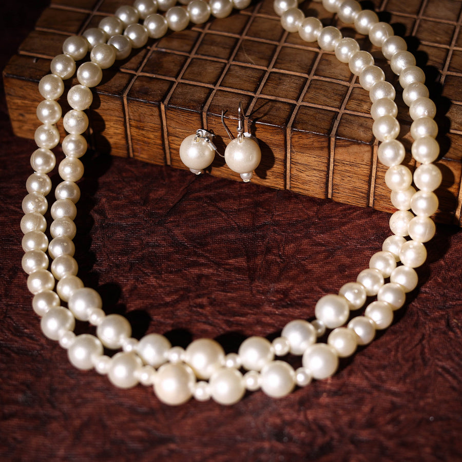 Elevate your look with this white handmade pearl necklace set, a stunning blend of tradition and elegance. Perfect for weddings, festive occasions, or everyday elegance. Crafted by skilled artisans, this set reflects heritage and artistry.