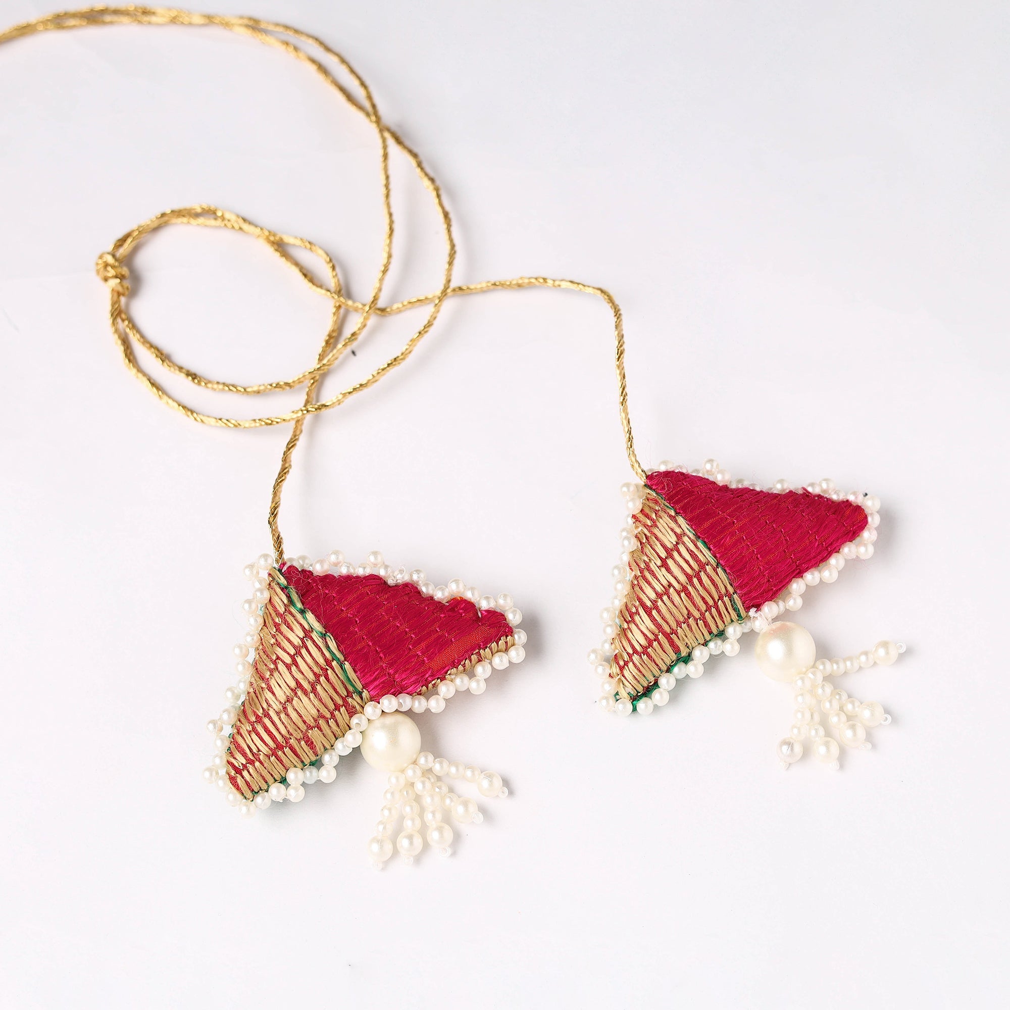 | Material | Enhance your outfit with these exquisite handmade embroidery latkan/tassels, crafted from rich phulkari fabric and glass beads. Perfect for lehengas, dupattas, blouses, or skirts, these unique tassels embody the traditional elegance of Phulkari craft, popular in Punjab. Each piece reflects hours of skilled artistry, adding a hint of heritage to modern style. |