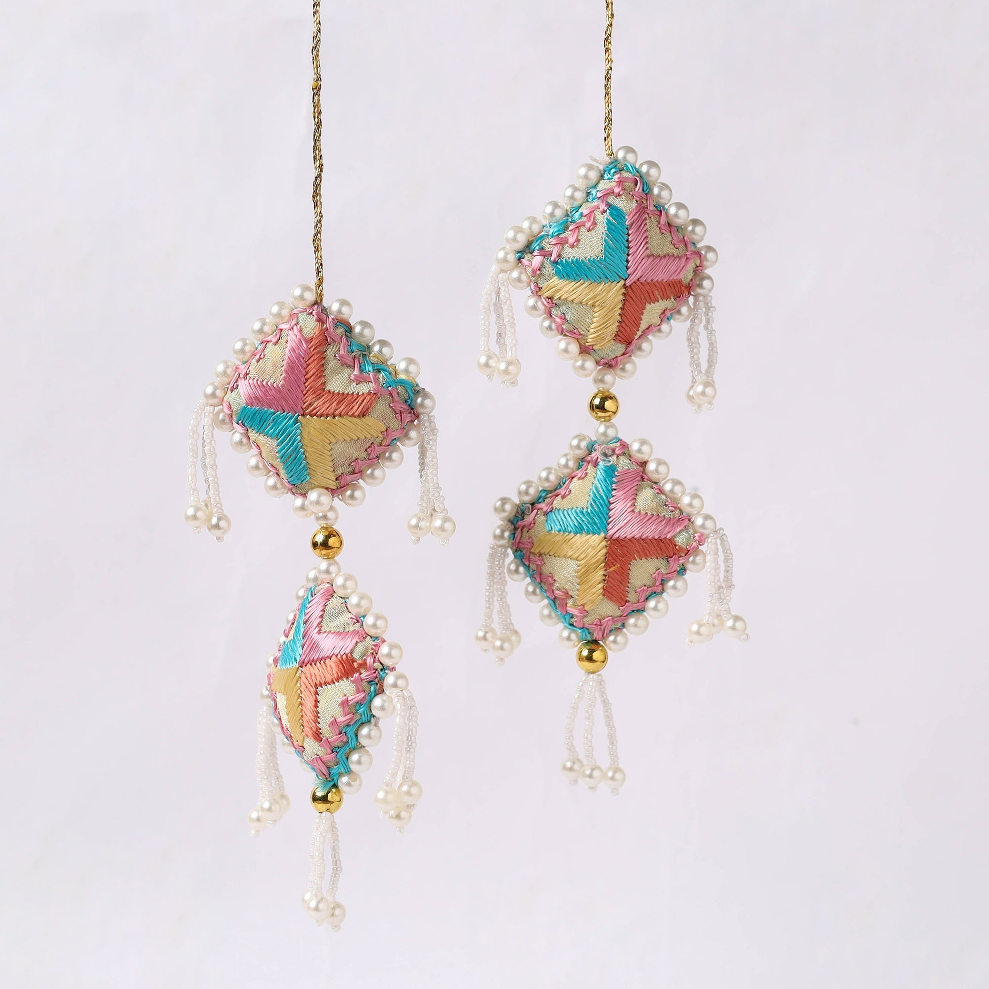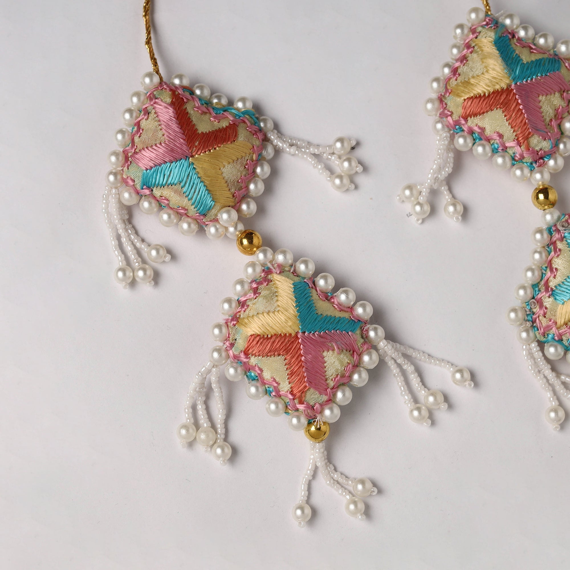 Enhance your outfit with these exquisite handmade embroidery latkan/tassels, crafted from rich phulkari fabric and glass beads. Perfect for lehengas, dupattas, blouses, or skirts, these unique tassels embody the traditional elegance of Phulkari craft, popular in Punjab. Each piece reflects hours of skilled artistry, adding a hint of heritage to modern style.