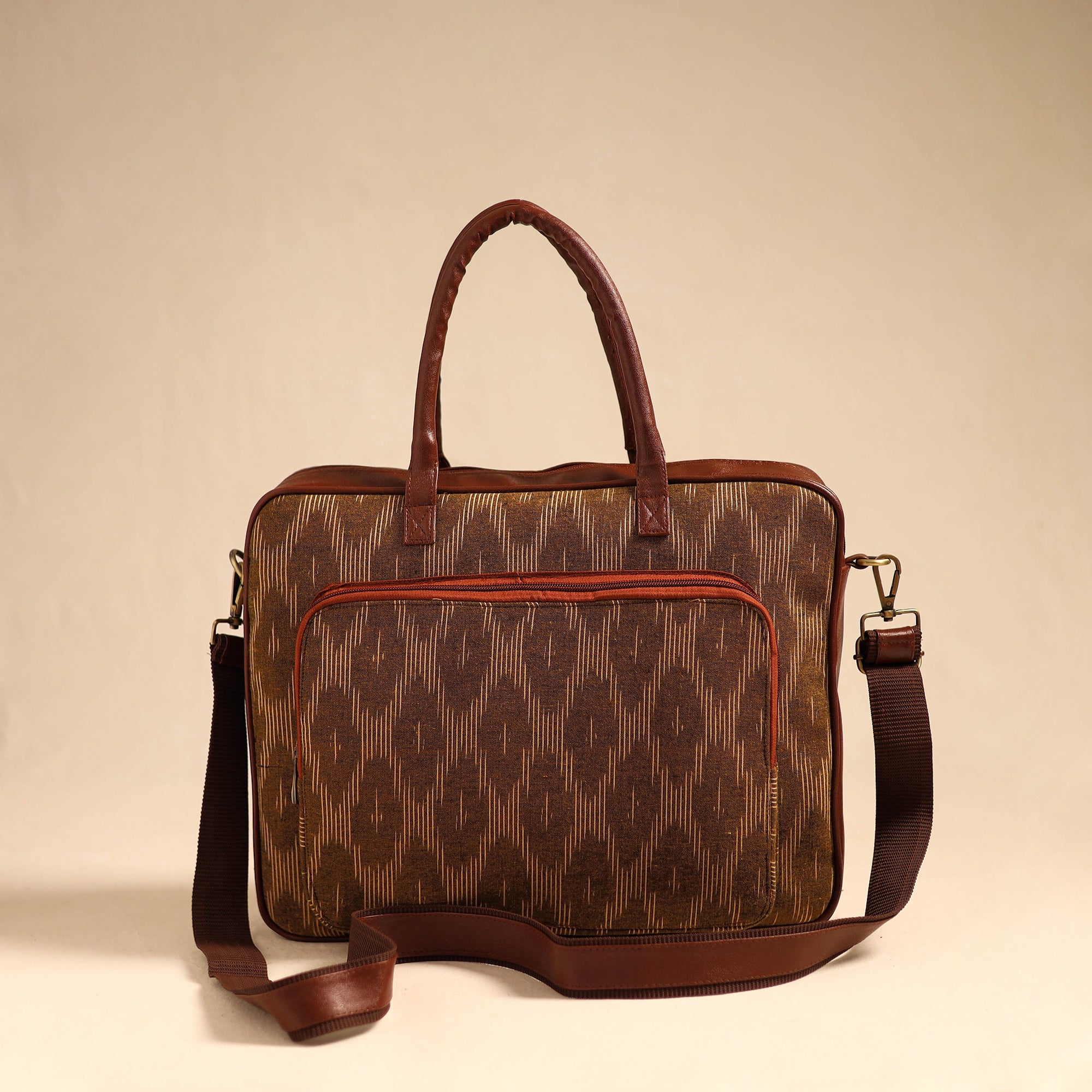 •  Brown Handmade Pochampally Ikat Laptop Bag