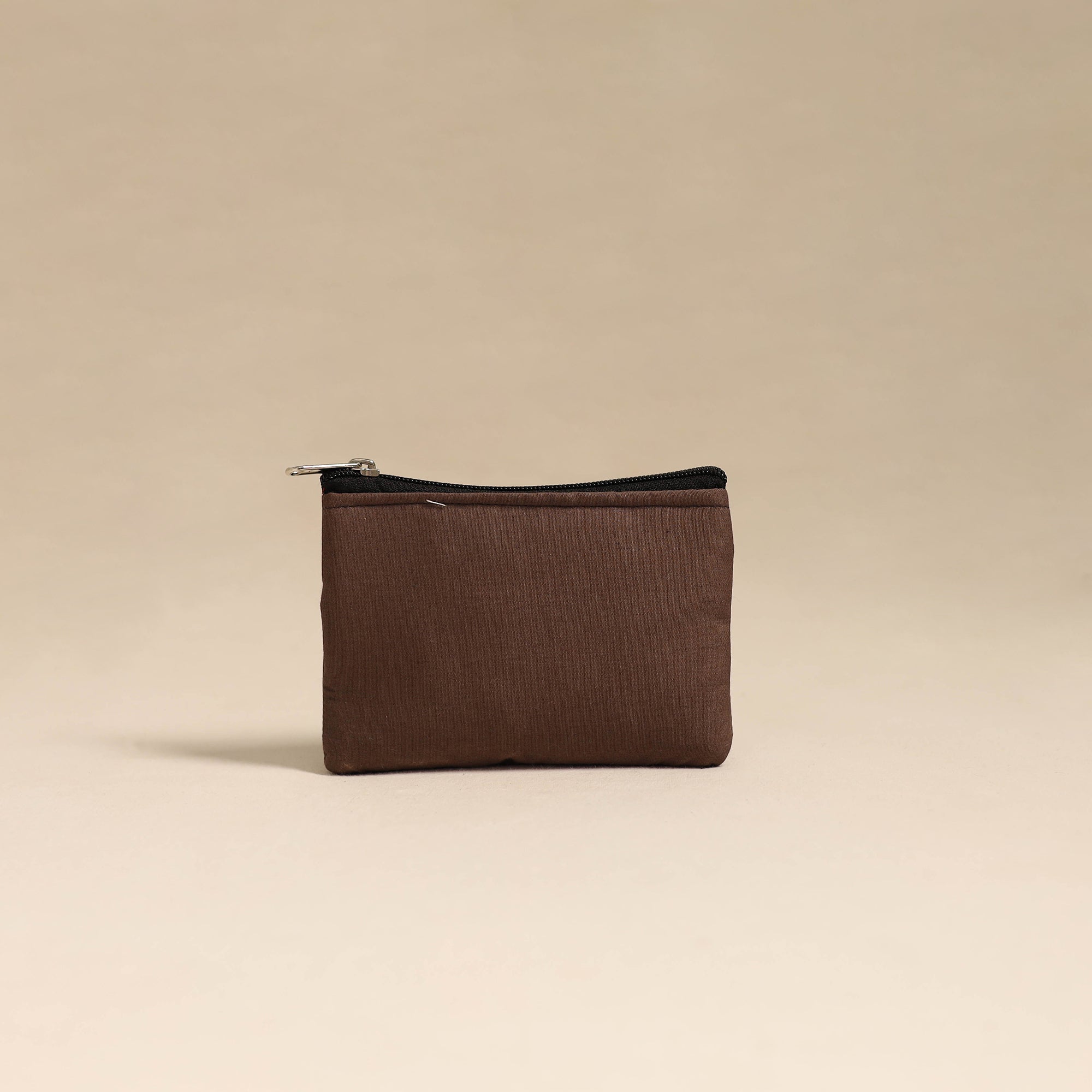 This brown handmade quilted cotton coin pouch is a must-have accessory for everyday use. It features a secure zip closure and ample space for coins, cards, and other small essentials. The quilted design adds a unique touch, offering both style and functionality while protecting your essentials