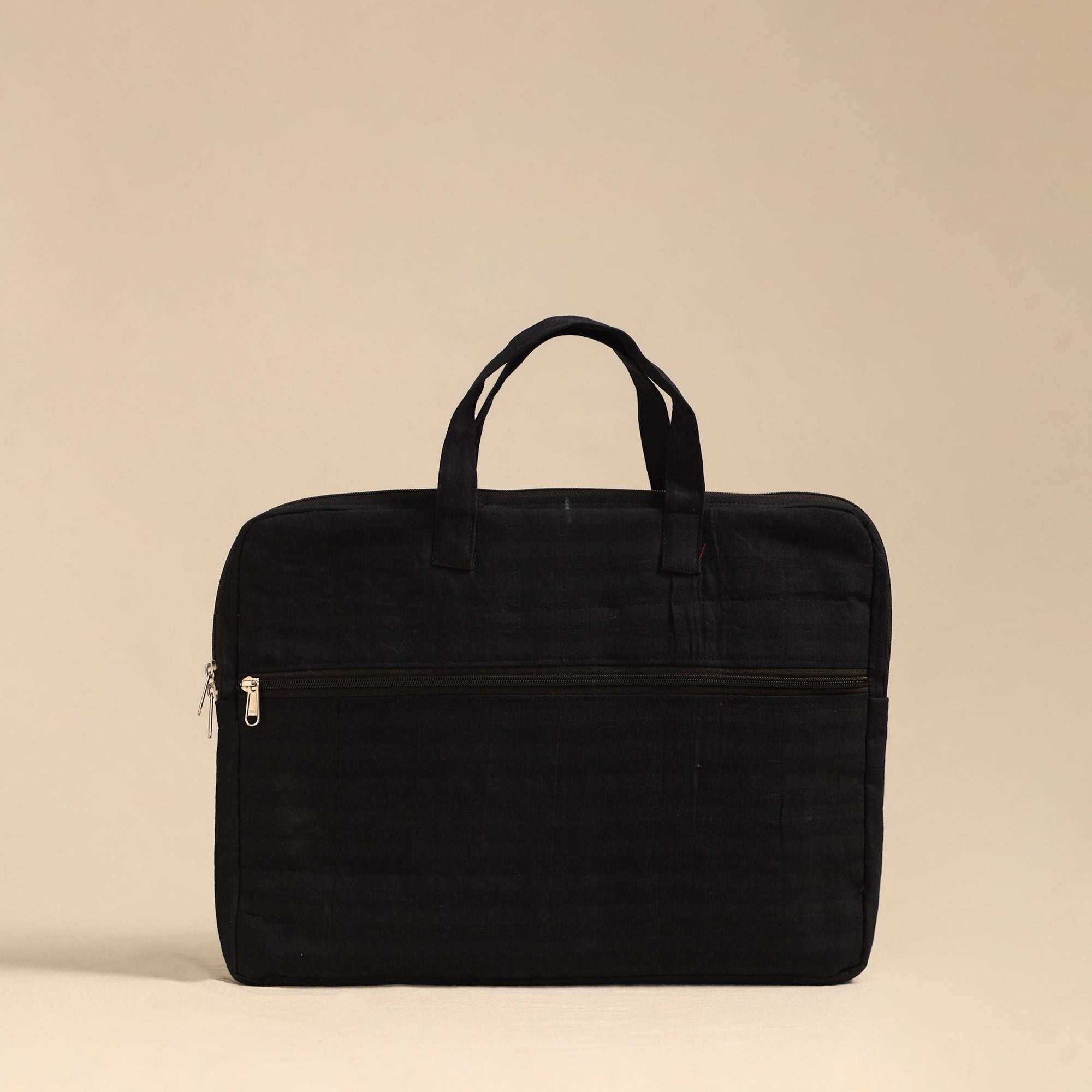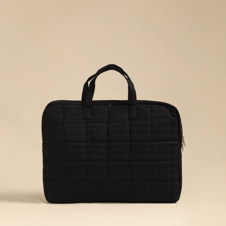 Protect and carry your laptop with style using our exquisite black handmade quilted cotton laptop bag. Crafted from durable cotton fabrics and lined with foam for added protection, this elegant bag features a dedicated laptop compartment and a convenient zipper pocket on the outside.