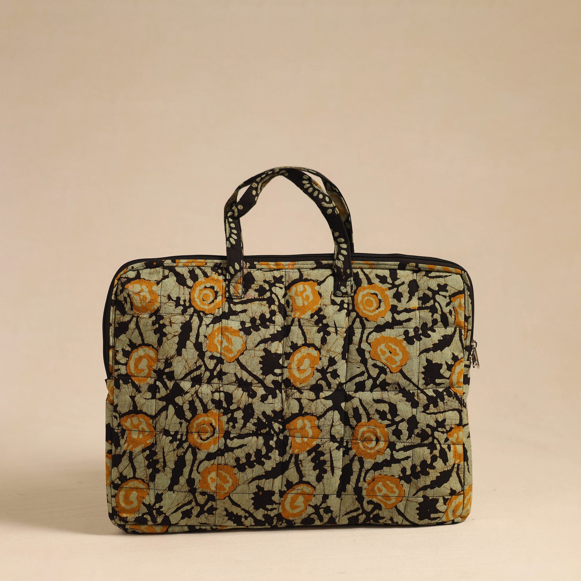 Protect and carry your laptop with style using our exquisite handmade quilted cotton laptop bag. Crafted from durable cotton fabrics and lined with foam for added protection, this elegant bag features a dedicated laptop compartment and a convenient zipper pocket on the outside.