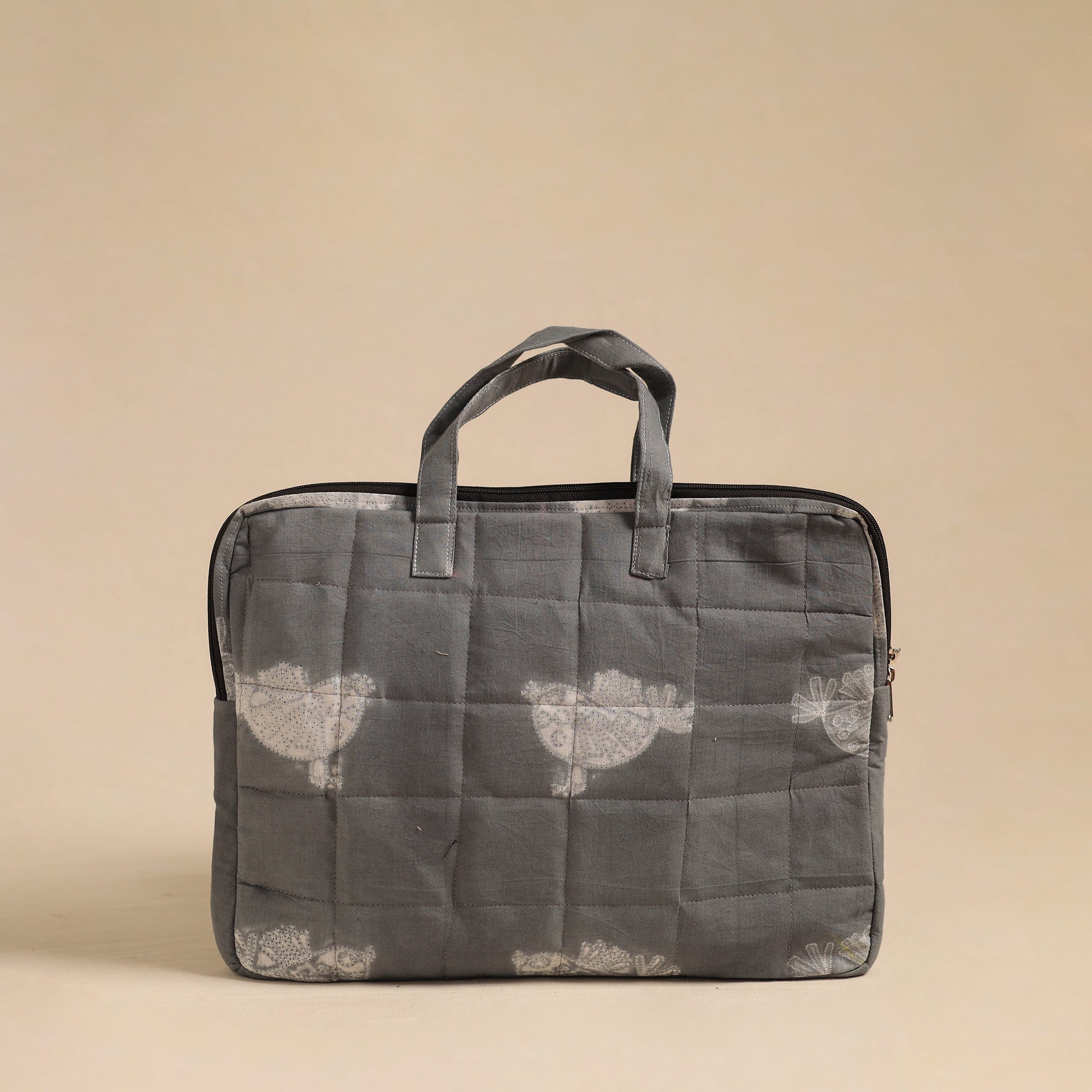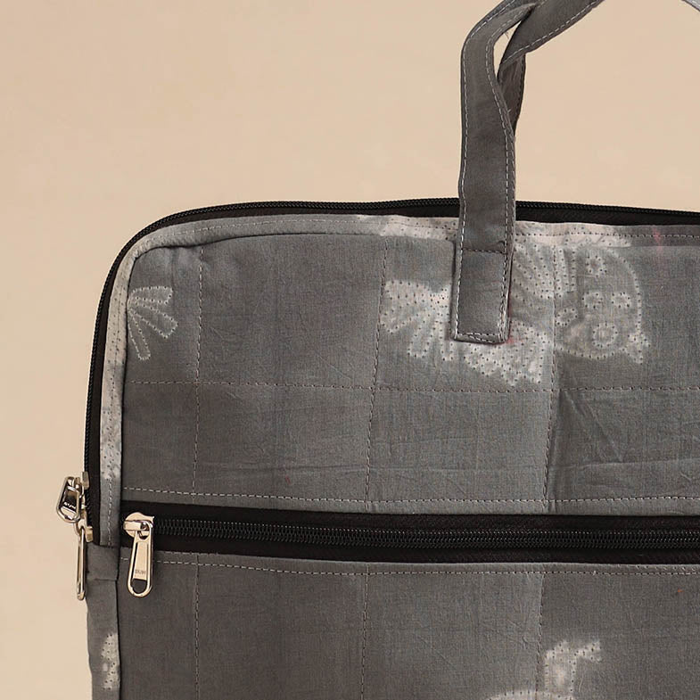 Grey - Handmade Quilted Cotton Laptop Bag 09