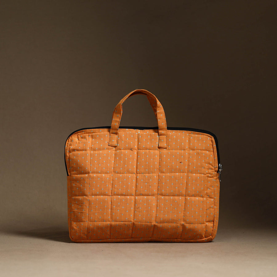 Protect and carry your laptop with style using our exquisite orange handmade quilted cotton laptop bag. Crafted from durable cotton fabrics and lined with foam for added protection, this elegant bag features a dedicated laptop compartment and a convenient zipper pocket on the outside.