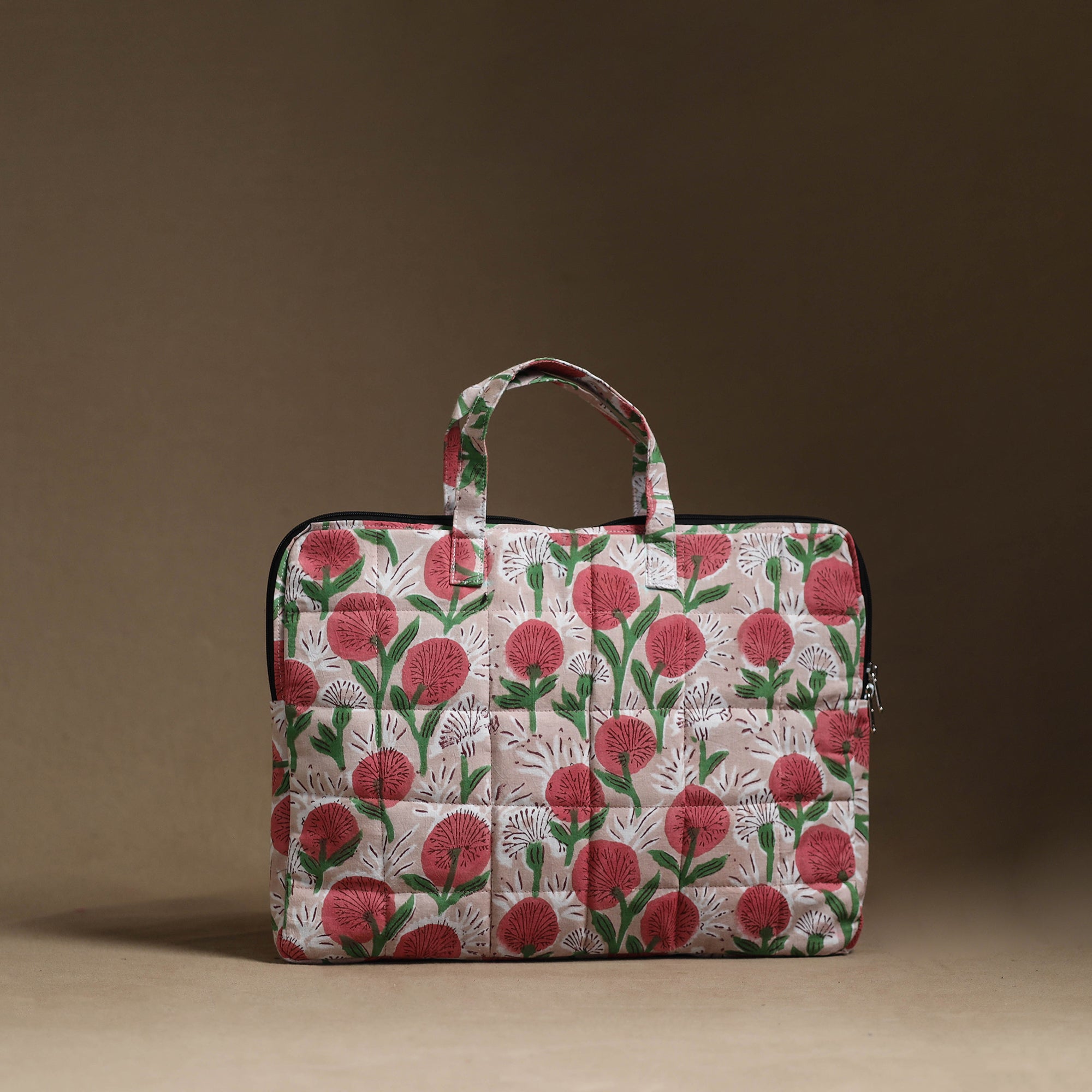 Protect and carry your laptop with style using our exquisite brown handmade quilted cotton laptop bag. Crafted from durable cotton fabrics and lined with foam for added protection, this elegant bag features a dedicated laptop compartment and a convenient zipper pocket on the outside.
