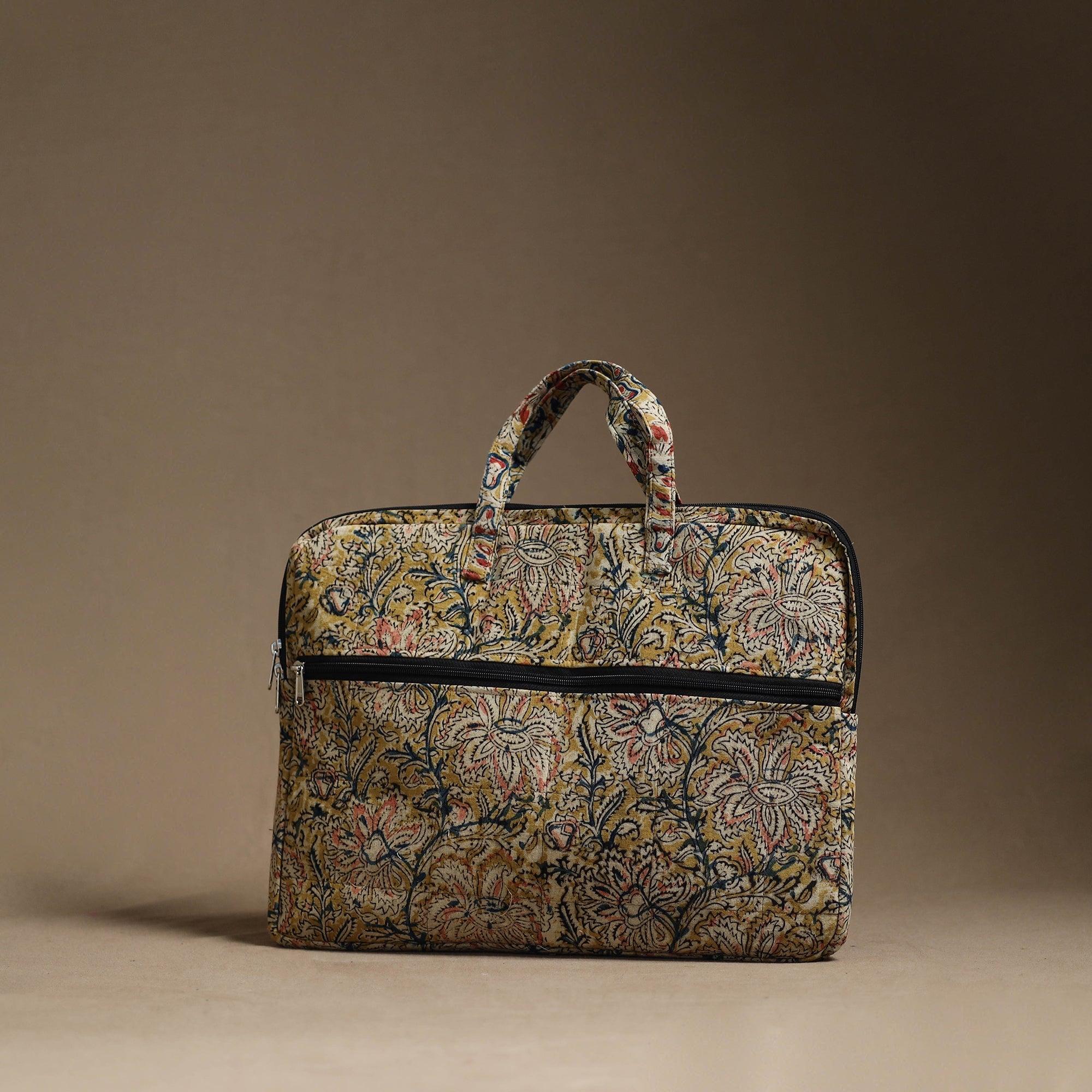Protect and carry your laptop with style using our exquisite yellow handmade quilted cotton laptop bag. Crafted from durable cotton fabrics and lined with foam for added protection, this elegant bag features a dedicated laptop compartment and a convenient zipper pocket on the outside.