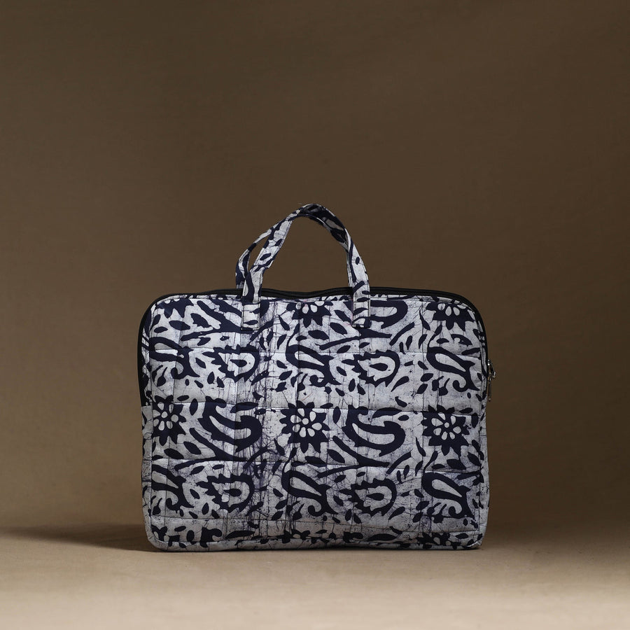 Protect and carry your laptop with style using our exquisite blue handmade quilted cotton laptop bag. Crafted from durable cotton fabrics and lined with foam for added protection, this elegant bag features a dedicated laptop compartment and a convenient zipper pocket on the outside.