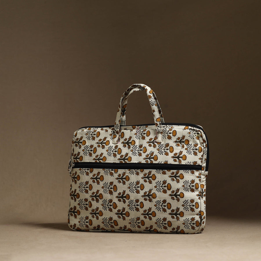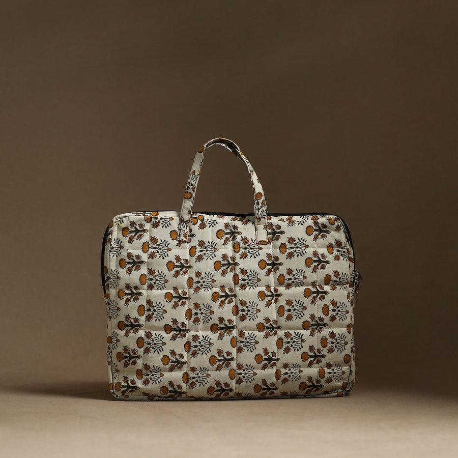 Protect and carry your laptop with style using our exquisite beige handmade quilted cotton laptop bag. Crafted from durable cotton fabrics and lined with foam for added protection, this elegant bag features a dedicated laptop compartment and a convenient zipper pocket on the outside.