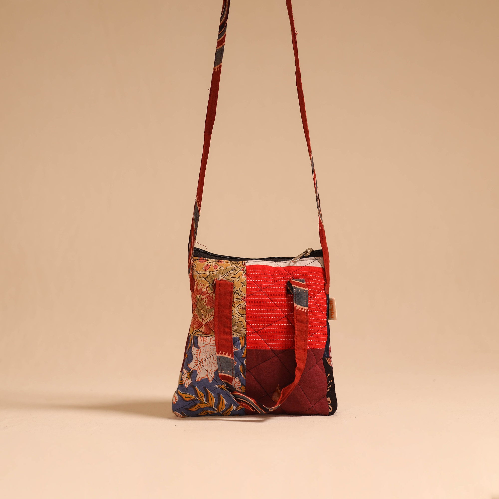 Add charm to your everyday style with this multicolor patchwork sling bag. Crafted from cotton fabrics and quilted for protection, it features four spacious pockets to hold your essentials. Easy to carry for daily use, travel, or casual outings, this sling bag beautifully reflects the traditional art of patchwork created by skilled artisans.