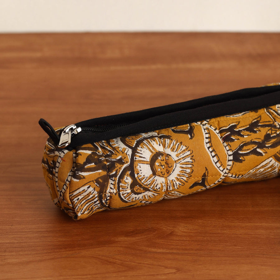 Keep your stationery organized with this handcrafted quilted yellow cotton pencil pouch. Designed for both style and durability, its cushioned construction provides excellent protection for your essentials. Its perfect for students, artists, and professionals, this versatile pouch conveniently accommodates pens, pencils, and small accessories.