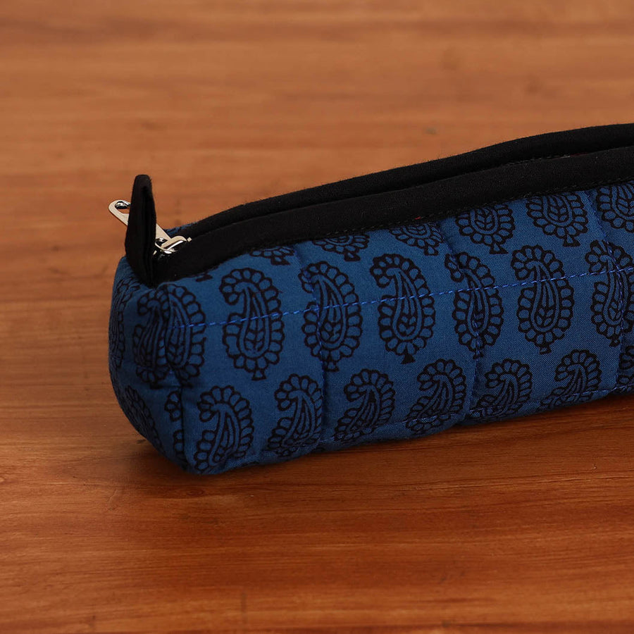 Introducing our premium blue handcrafted quilted cotton pencil pouch. Designed for both style and durability, it keeps your essentials safe and secure. Whether you are a student, an artist, or a busy professional, its versatile design offers a stylish and practical way to store pens, pencils, and small accessories, elevating your daily workflow with a touch of artisanal excellence.