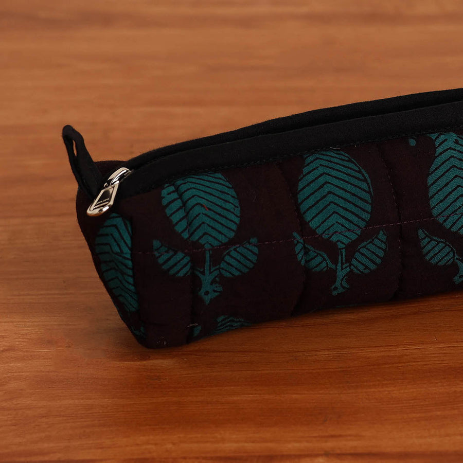 Introducing our premium black handcrafted quilted cotton pencil pouch. Designed for both style and durability, it keeps your essentials safe and secure. Whether you are a student, an artist, or a busy professional, its versatile design offers a stylish and practical way to store pens, pencils, and small accessories, elevating your daily workflow with a touch of artisanal excellence.